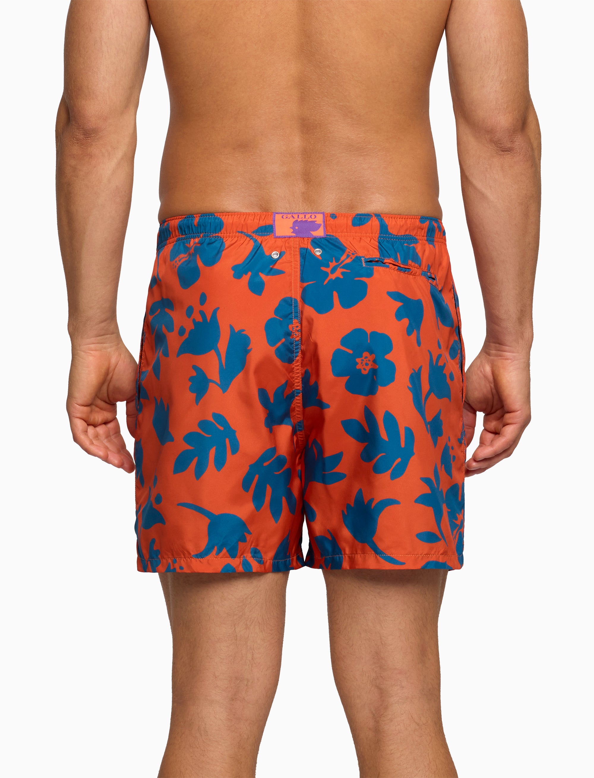 Boxer mare uomo fantasia fiori su fondo arancio - Gallo 1927 - Official Online Shop