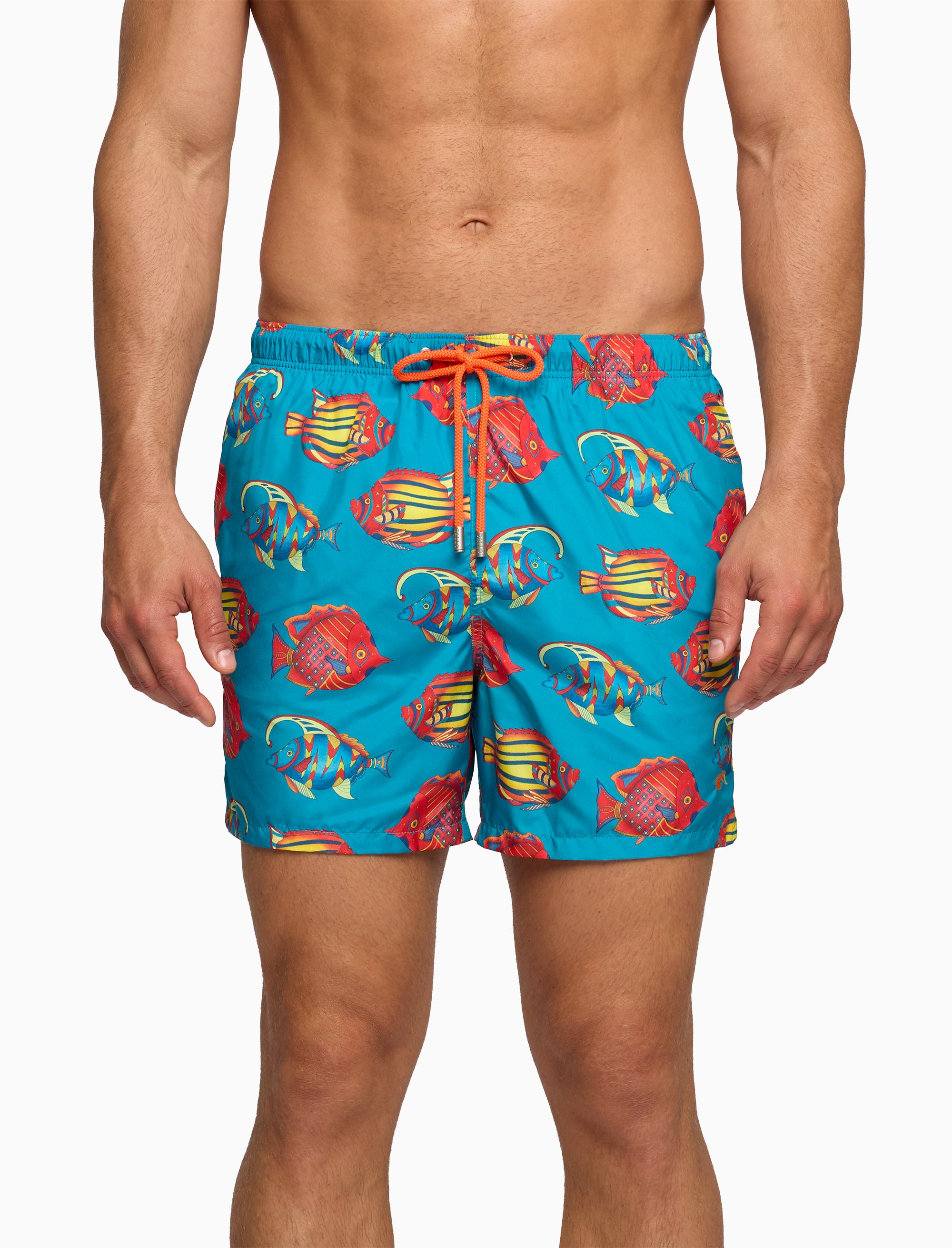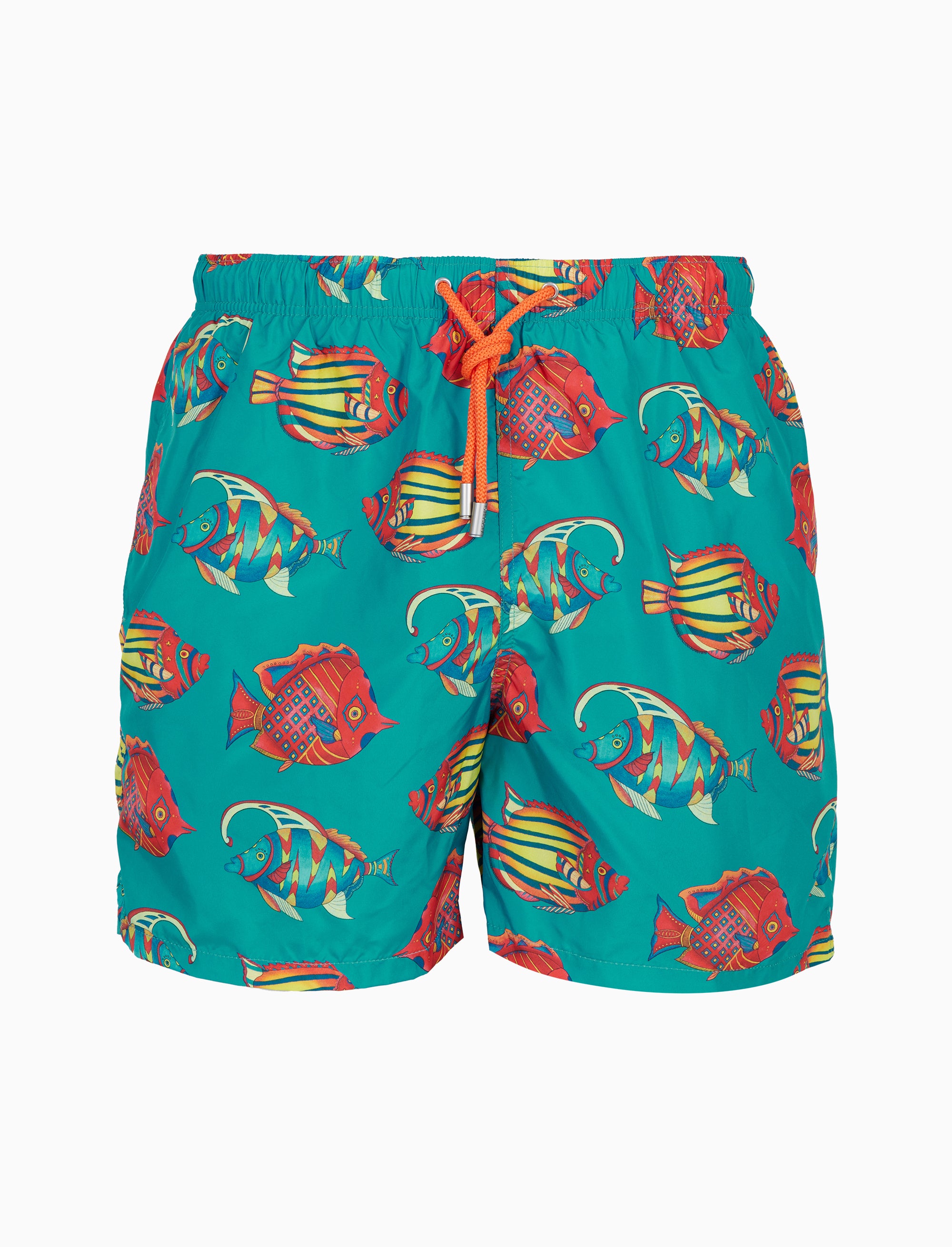 Boxer mare uomo fantasia pesci su fondo color pavone