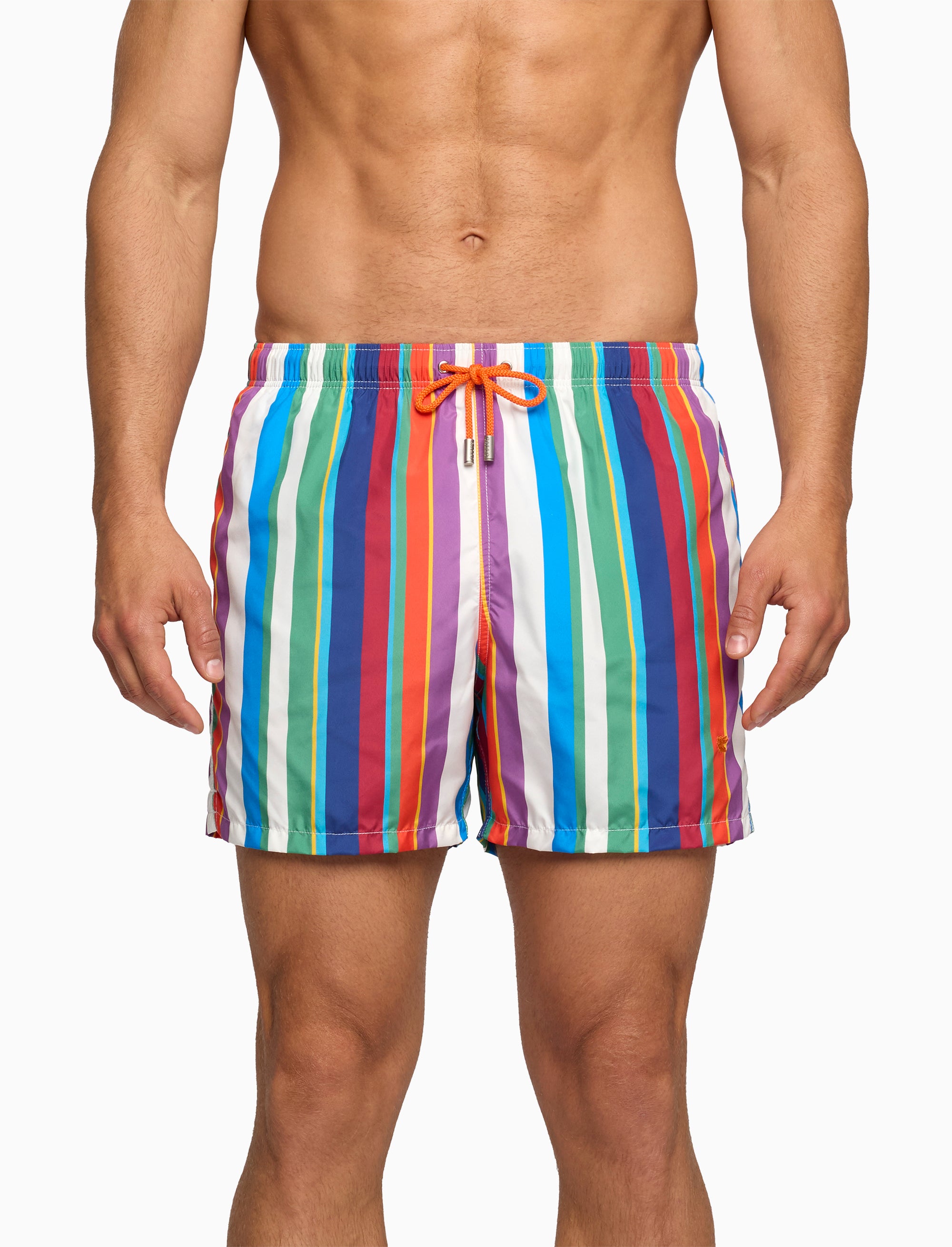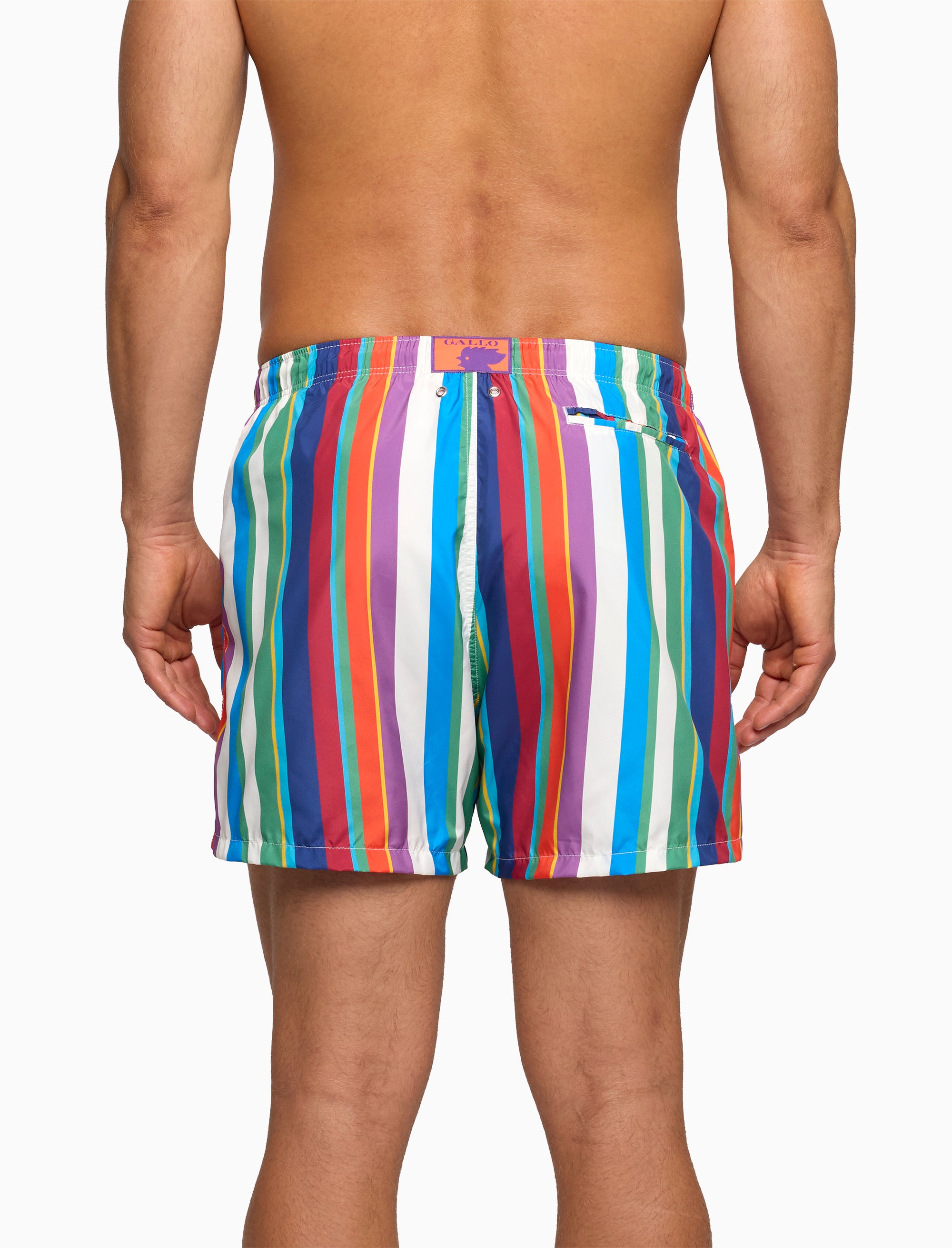 Costume da uomo modello boxer realizzato in fibra sintetica. L'elastico in vita garantisce il massimo comfort. L'iconica fantasia a righe multicolor nei toni del bianco tiene fede alla tradizione Gallo, sinonimo di qualità ed eccellenza italiana dal 1927.