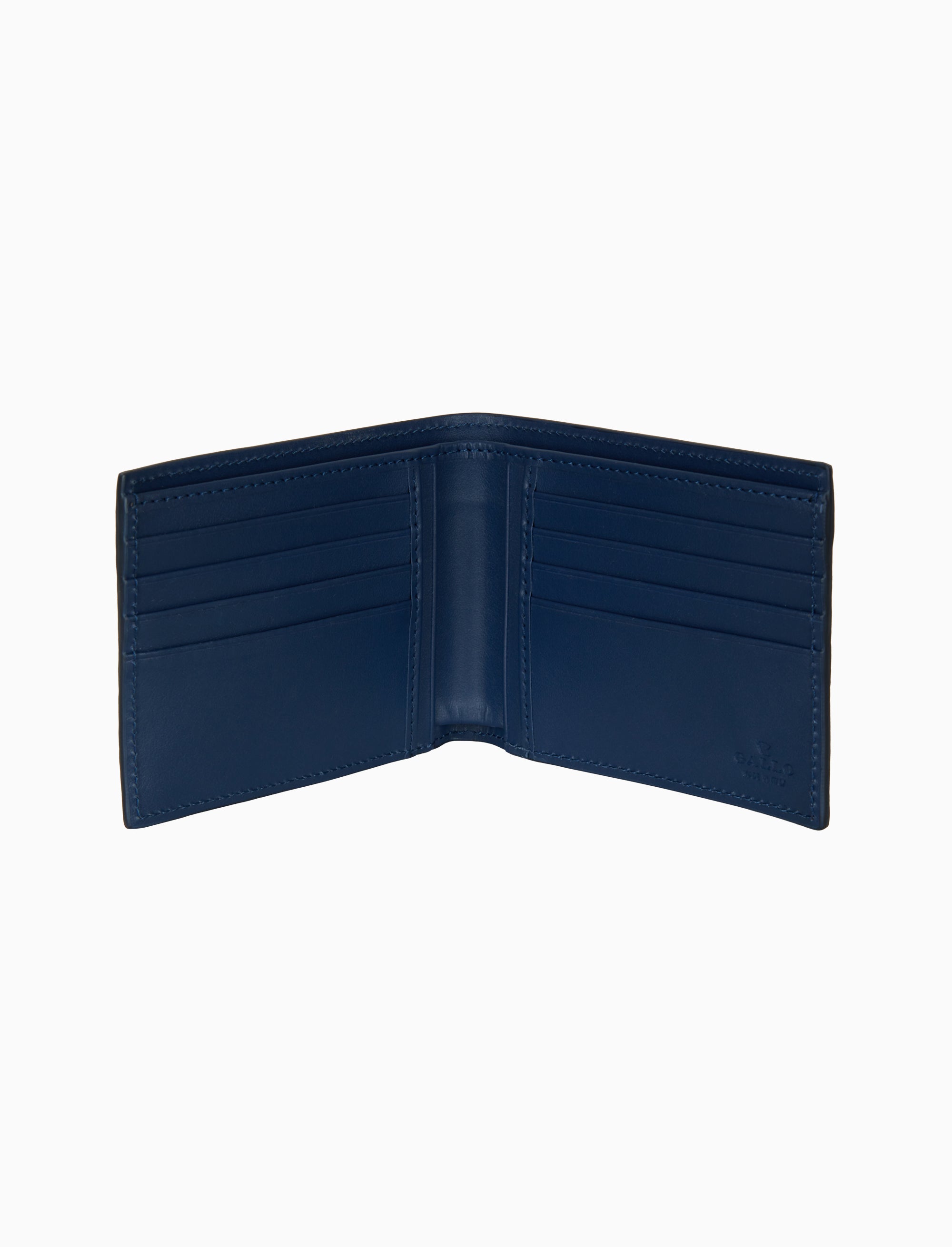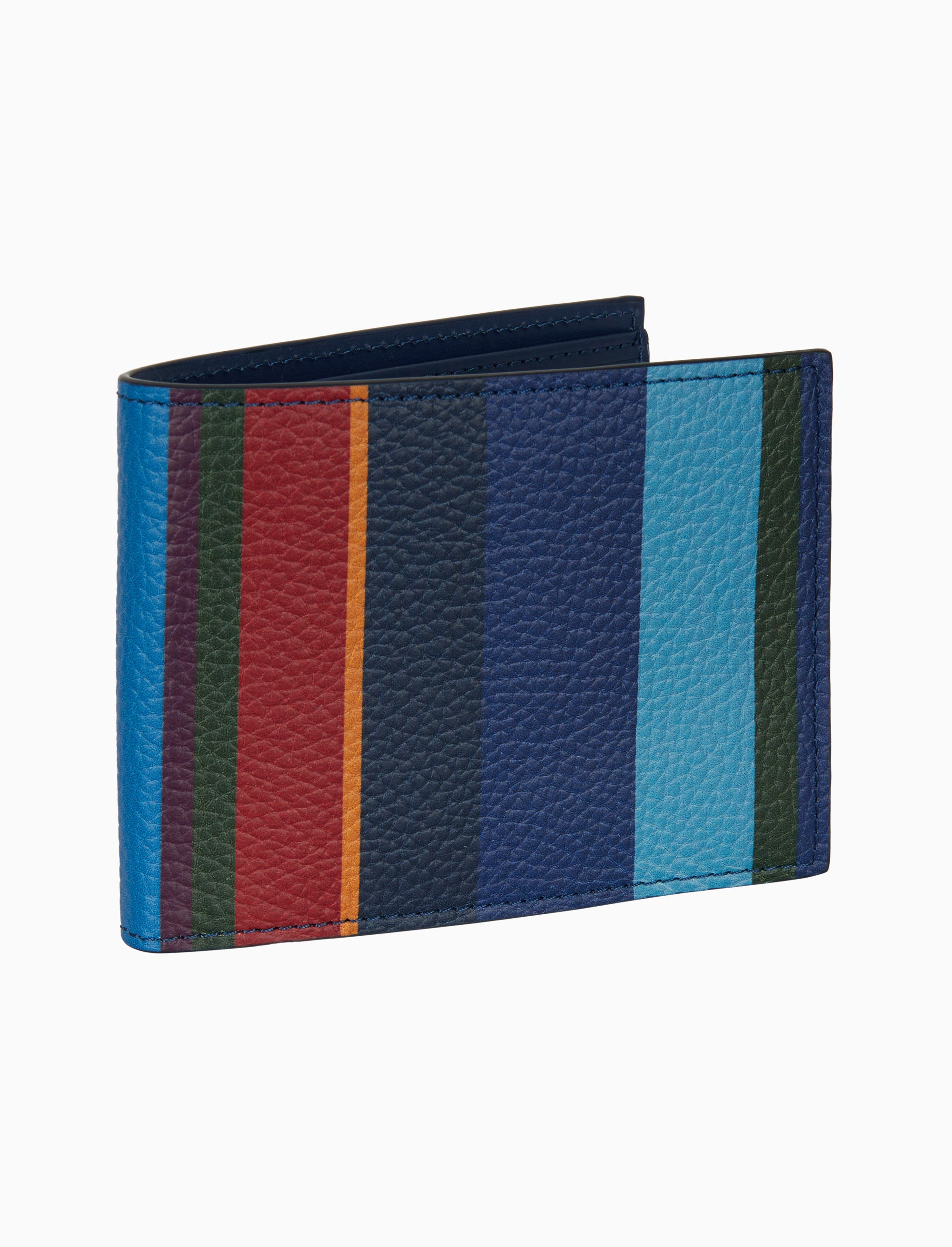 Portafoglio da uomo in pelle martellata con righe multicolor blu. Un dettaglio esclusivo per un look moderno e curato.