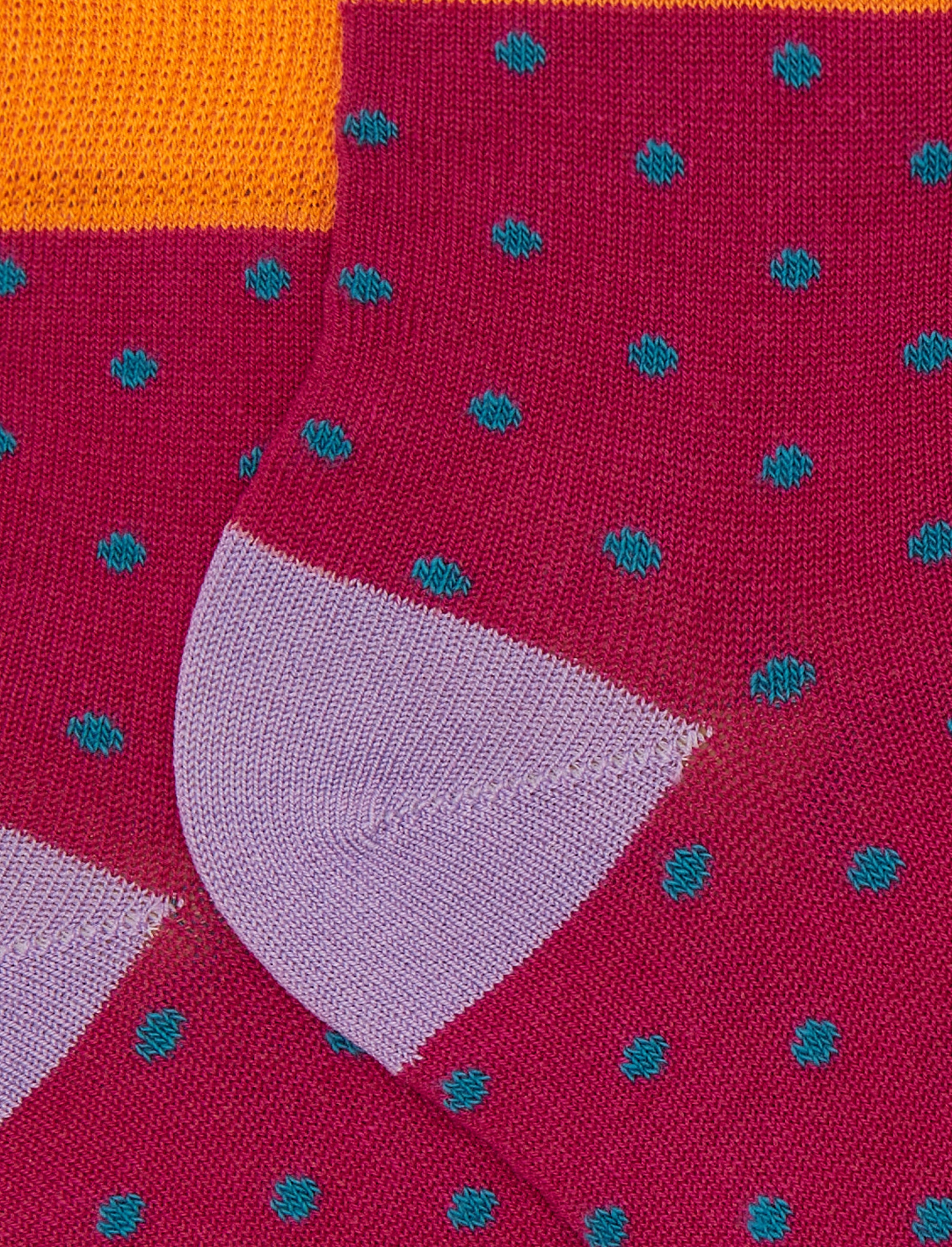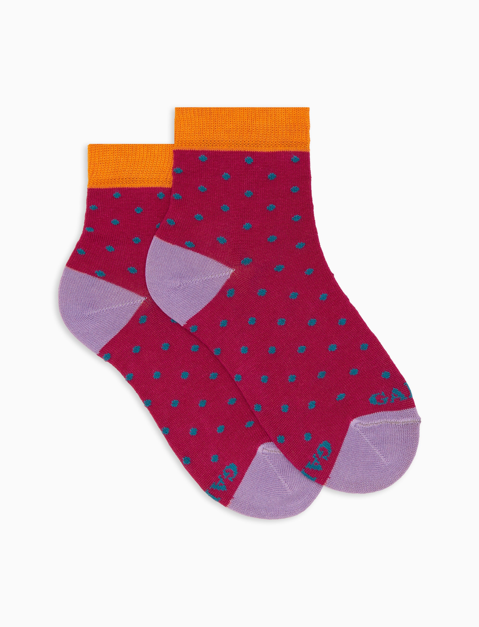 Kid's super short fuchsia cotton socks with polka dot pattern