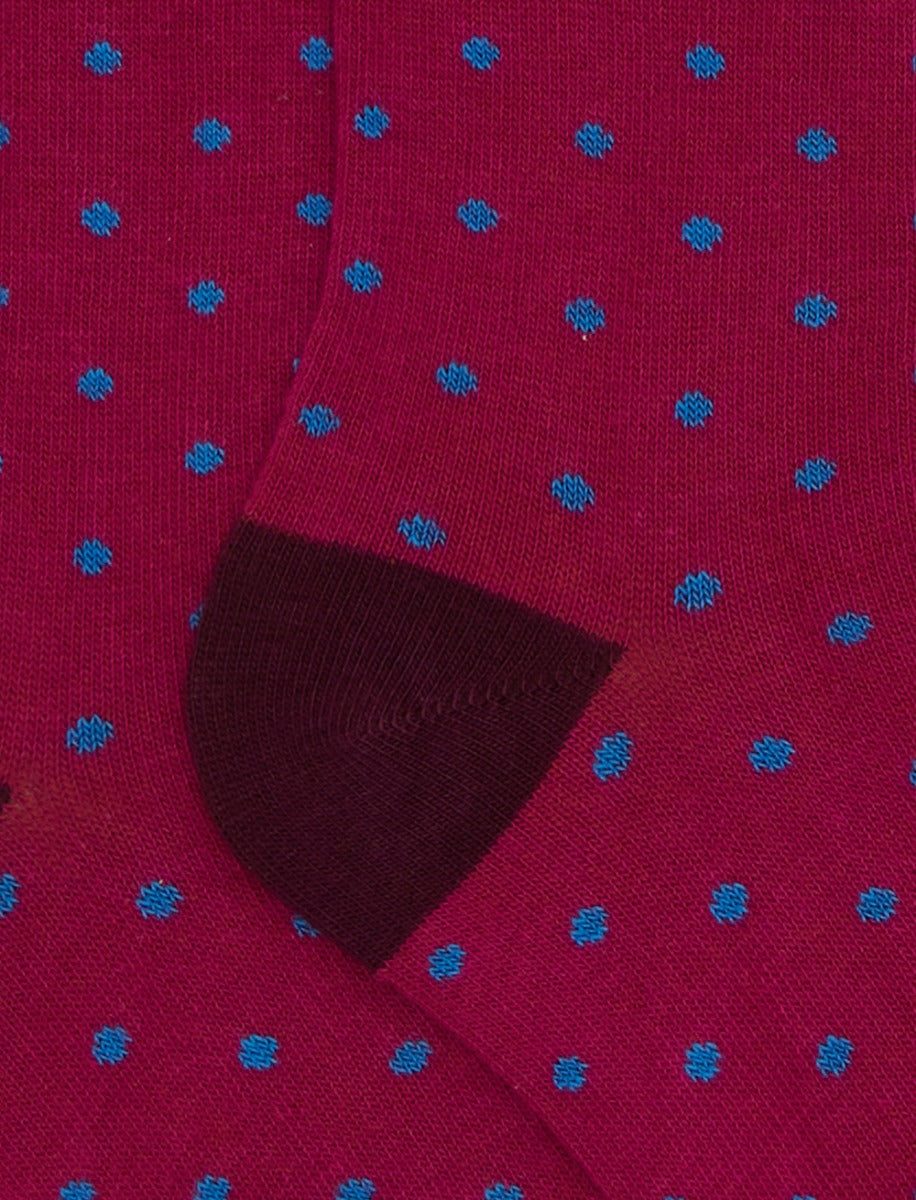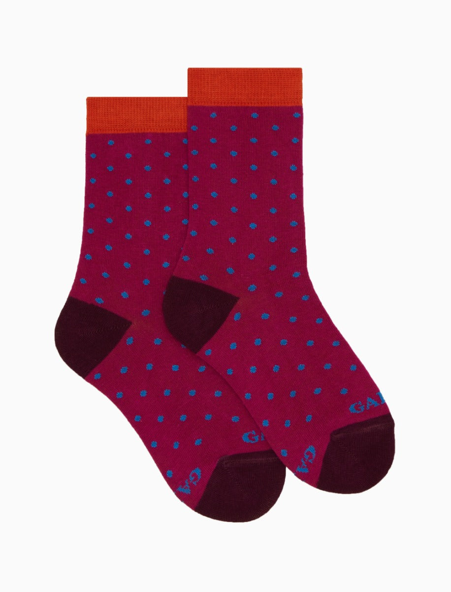 Kids' short fuchsia cotton socks with polka dots