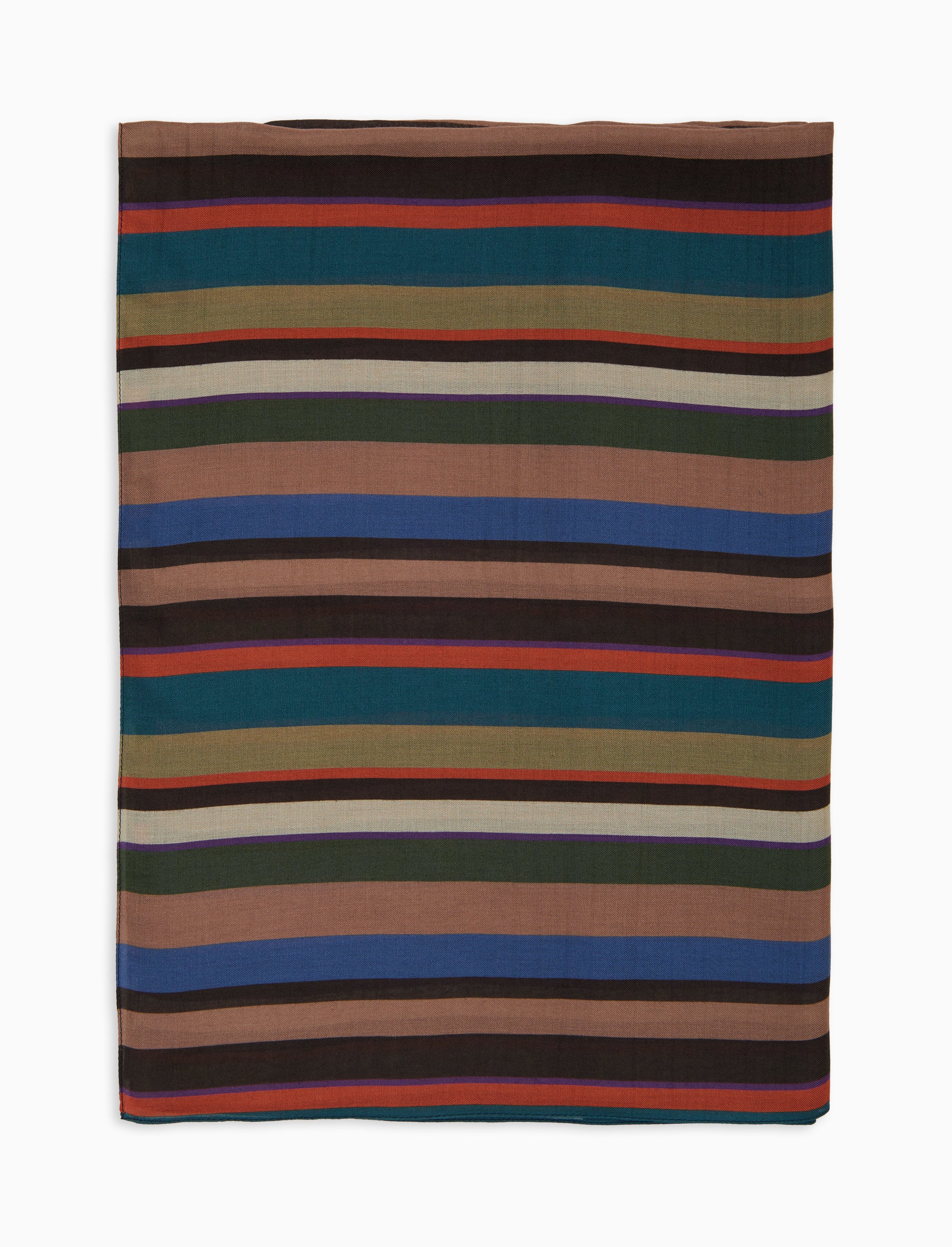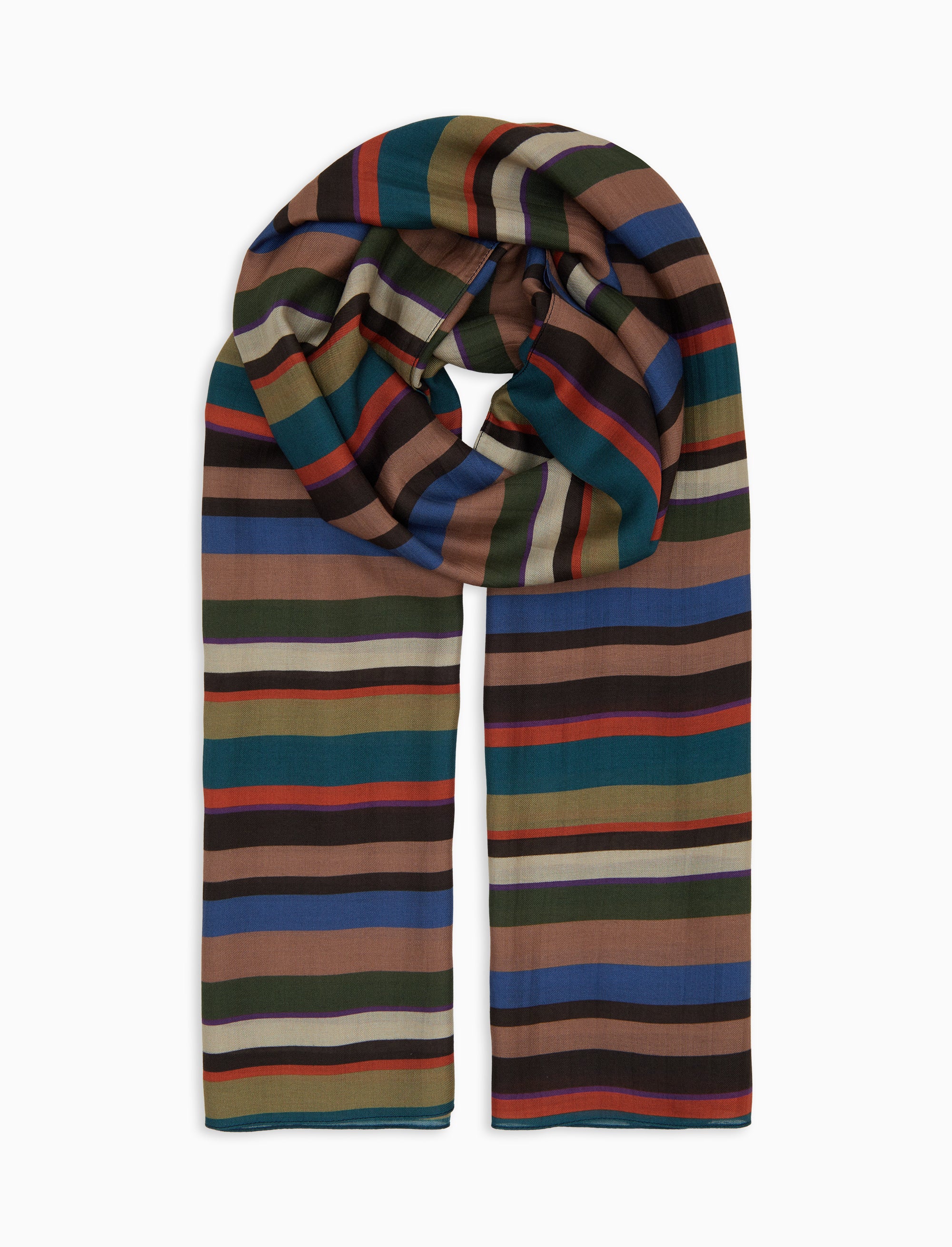 Lightweight beige unisex scarf with multicoloured stripes