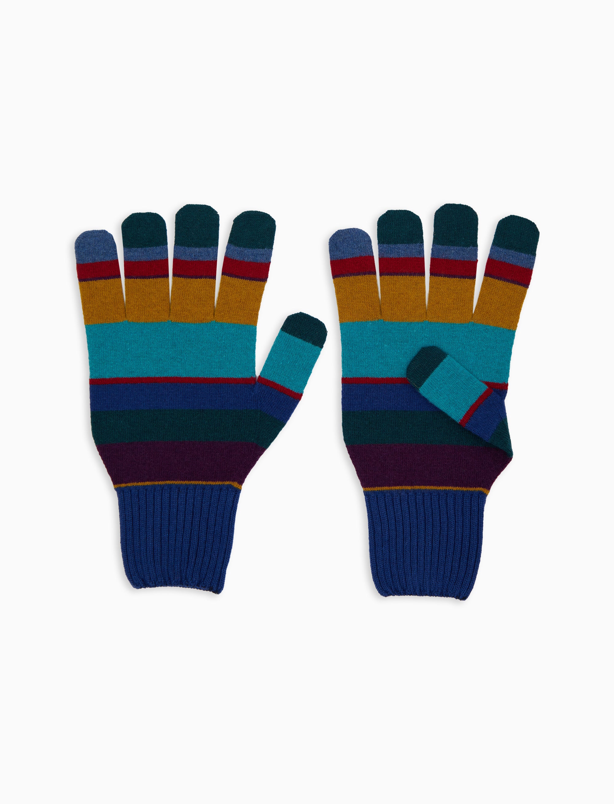 Men's blue wool gloves with multicoloured stripes