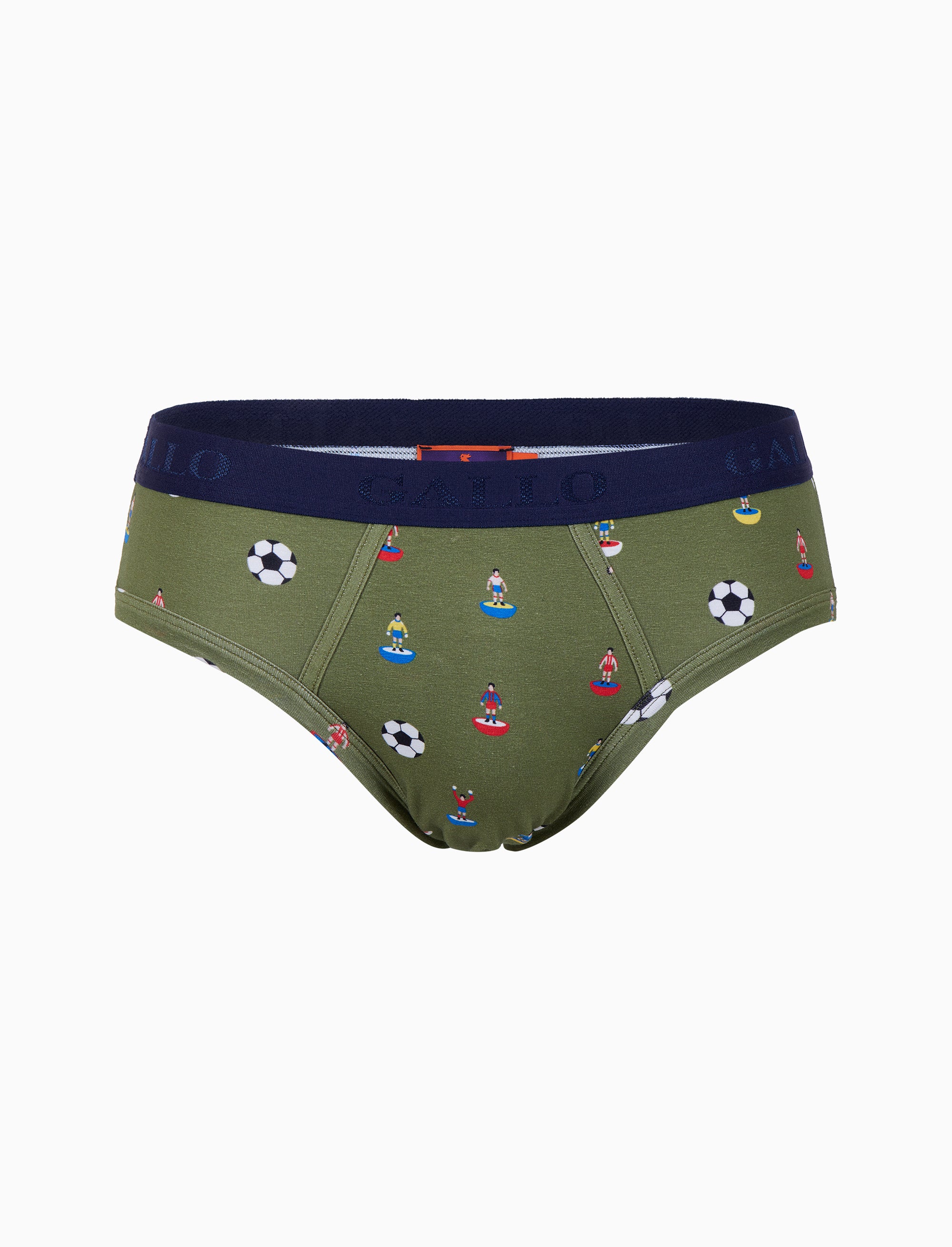Men's green cotton briefs with football motif