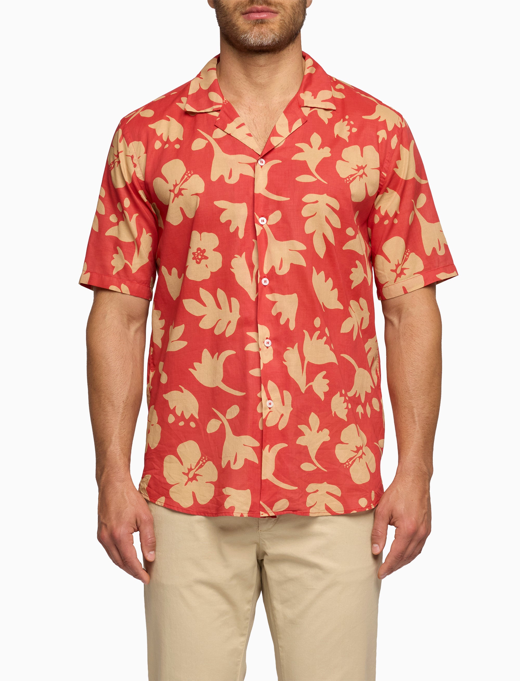 Men's Hawaiian shirt cotton with floral pattern red