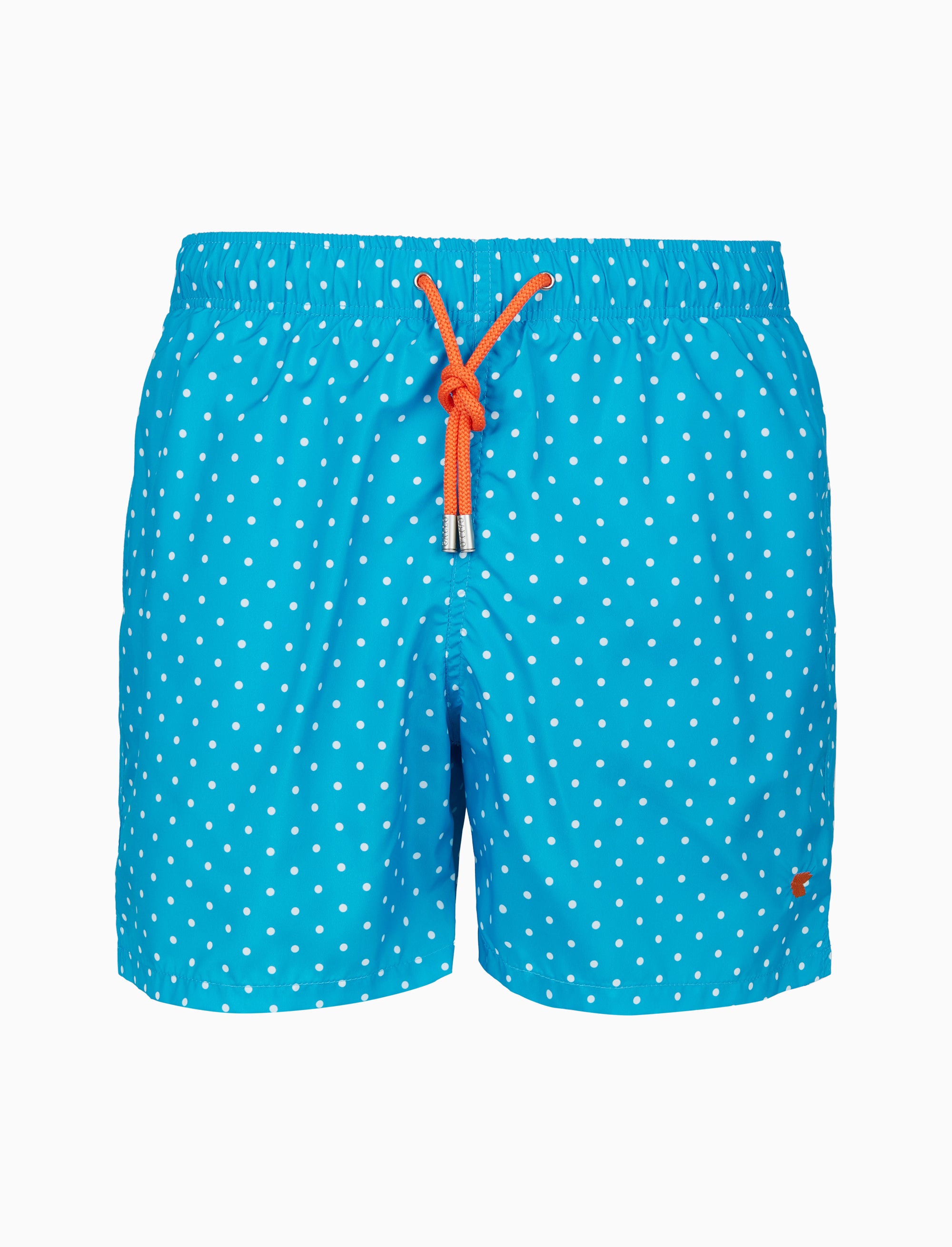 Men's swimming shorts made from synthetic material. The elastic waistband guarantees maximum comfort. The iconic polka dot pattern and shades of light blue remain true to the proud traditions of Gallo, a brand embodying Italian quality and excellence since 1927.