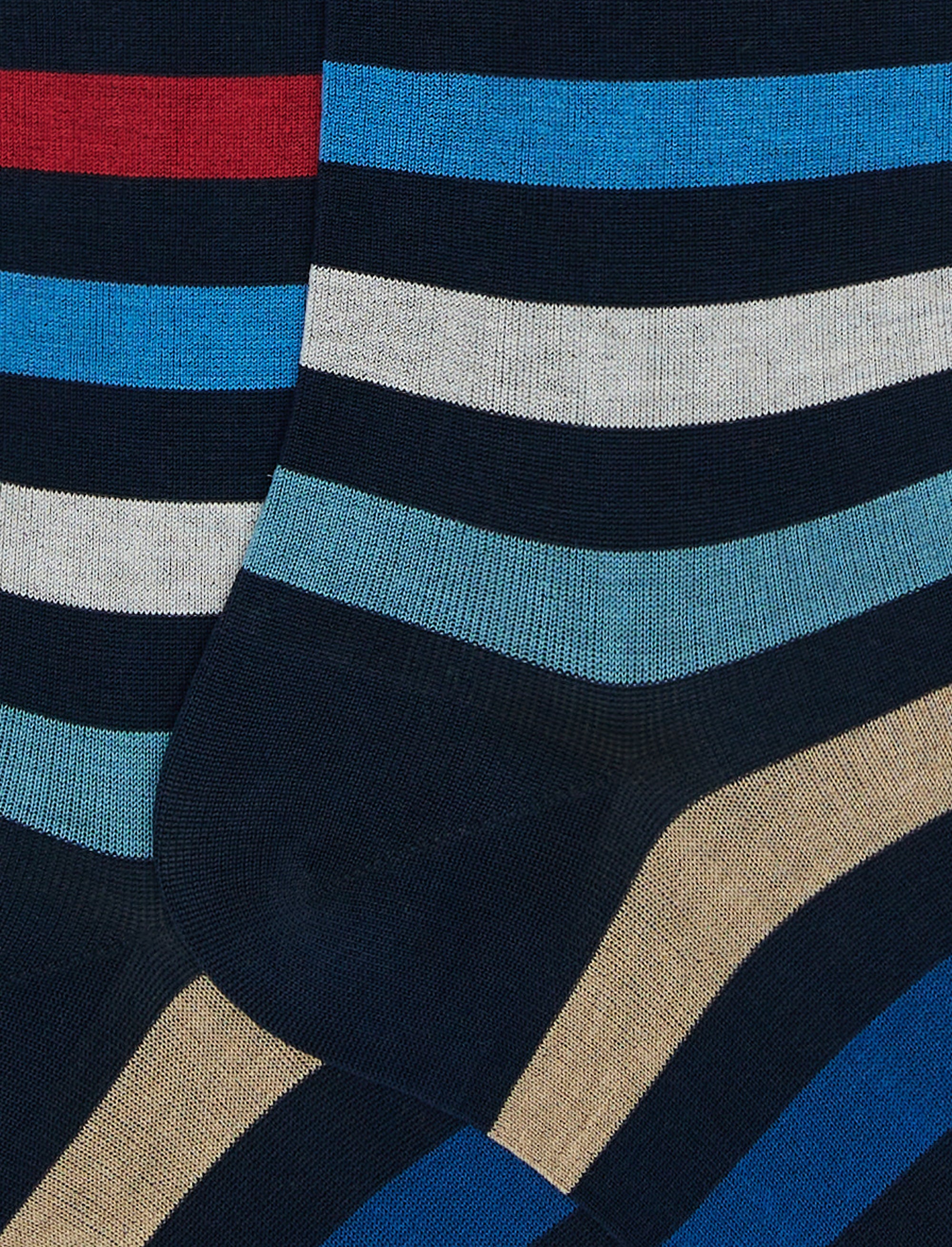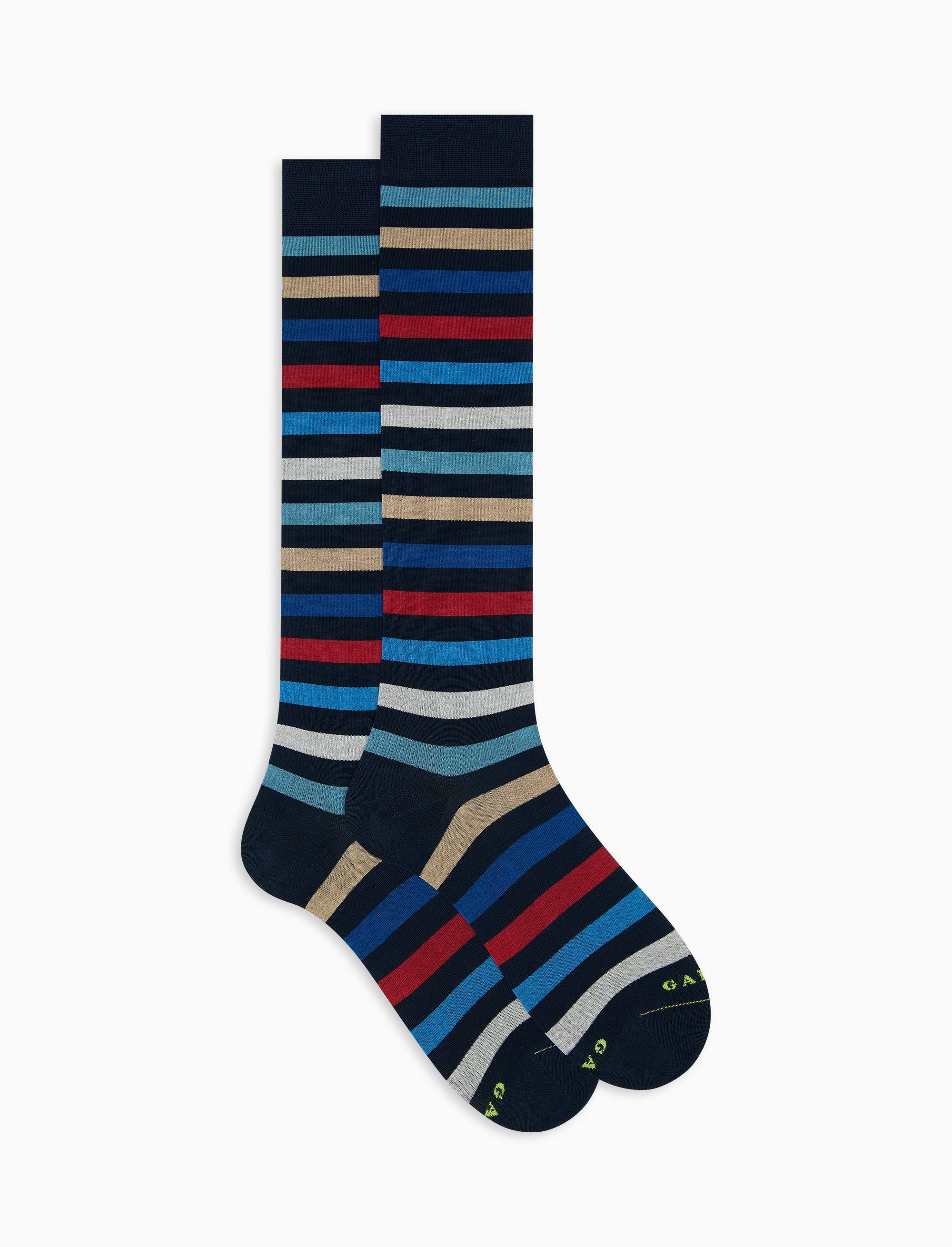 Calze lunghe uomo cotone leggerissimo blu oltremare righe pari - Gallo 1927 - Official Online Shop