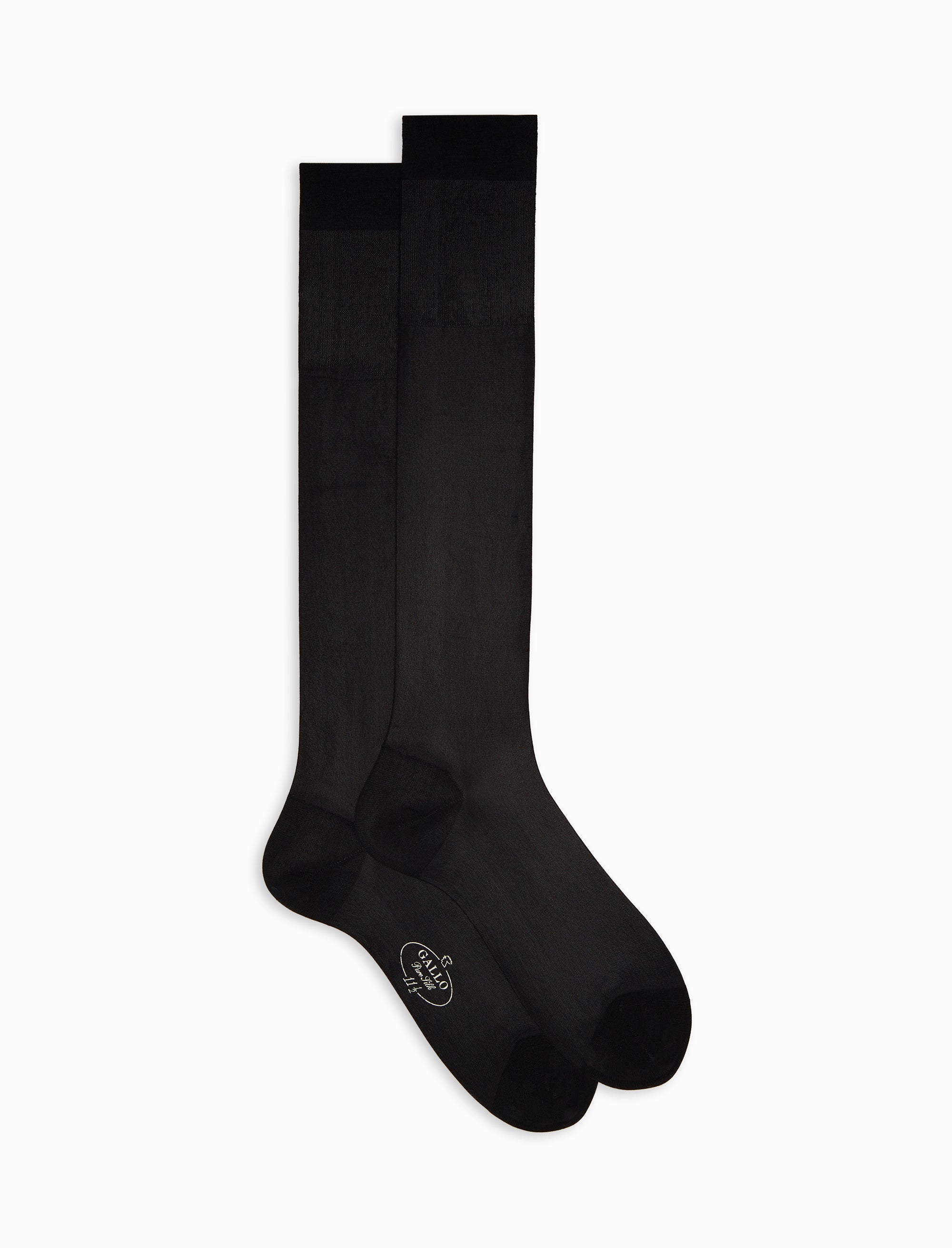 Men's long plain black silk socks