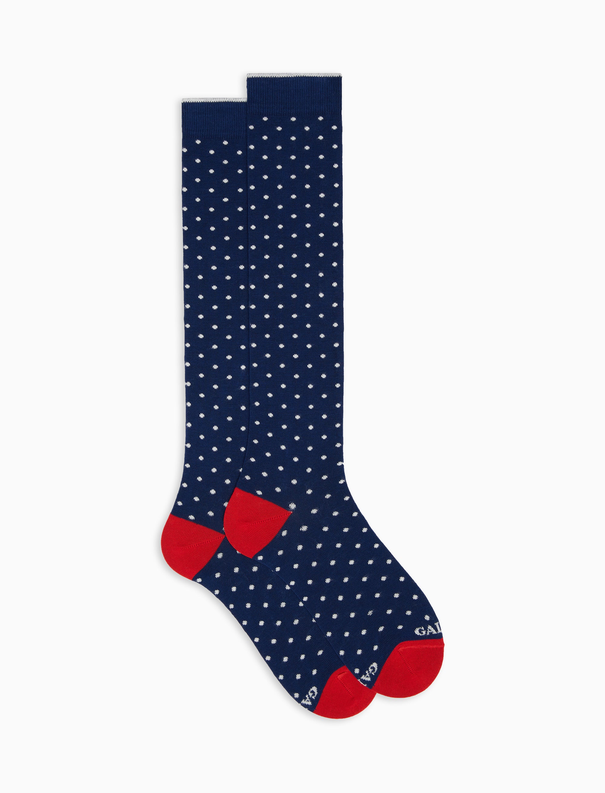 Long royal blue socks with polka dots