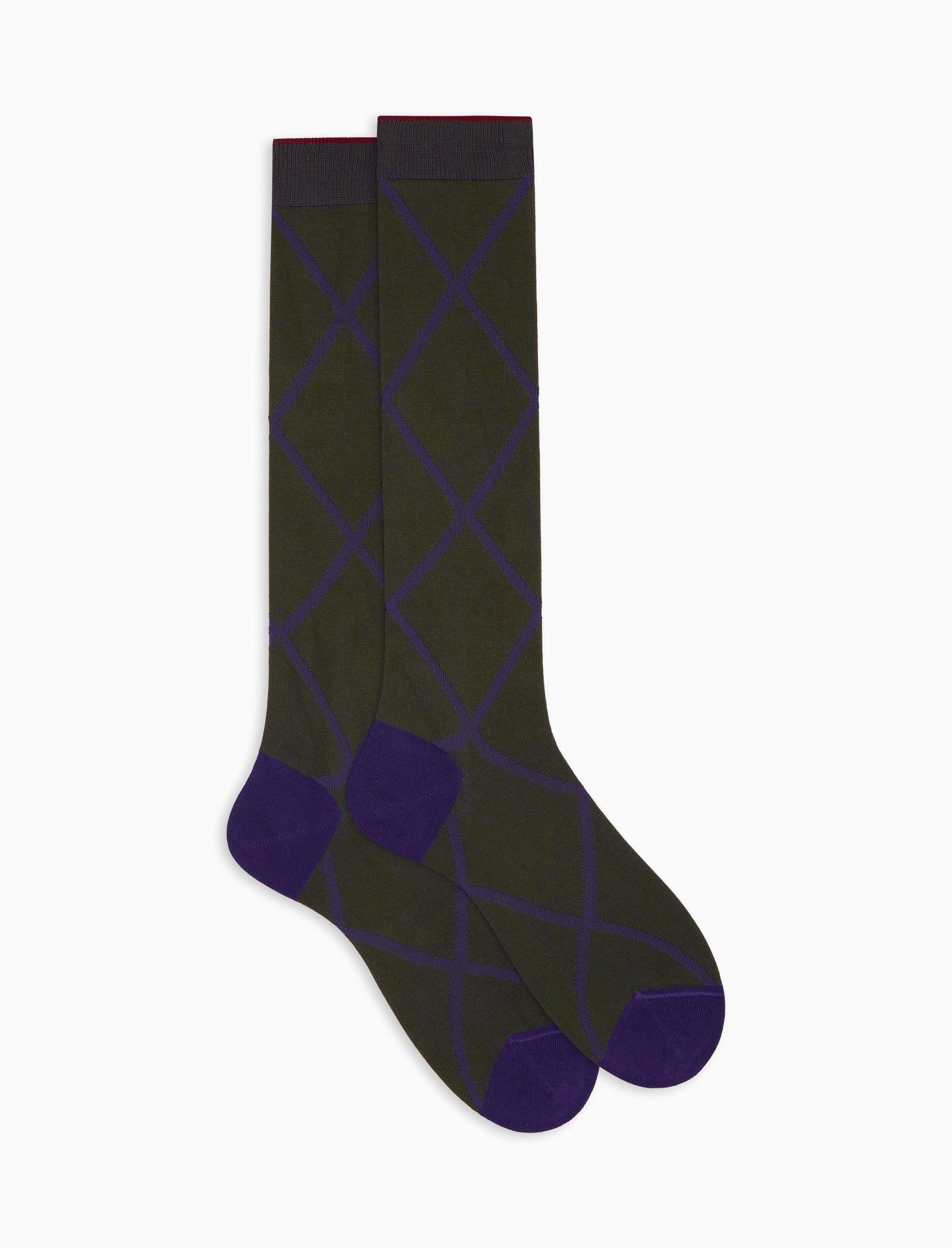 Calze lunghe uomo cotone verde fantasia rombi - Gallo 1927 - Official Online Shop