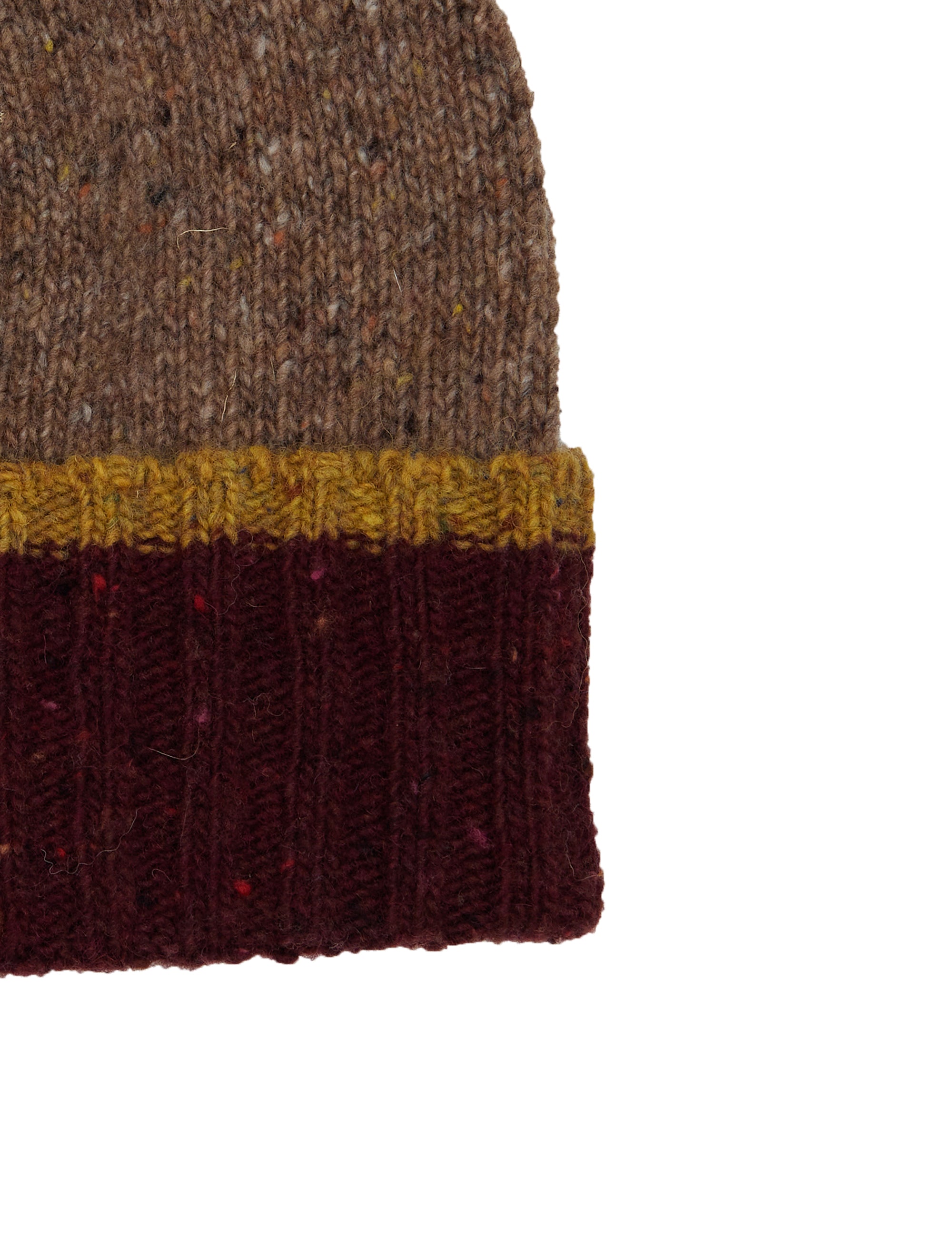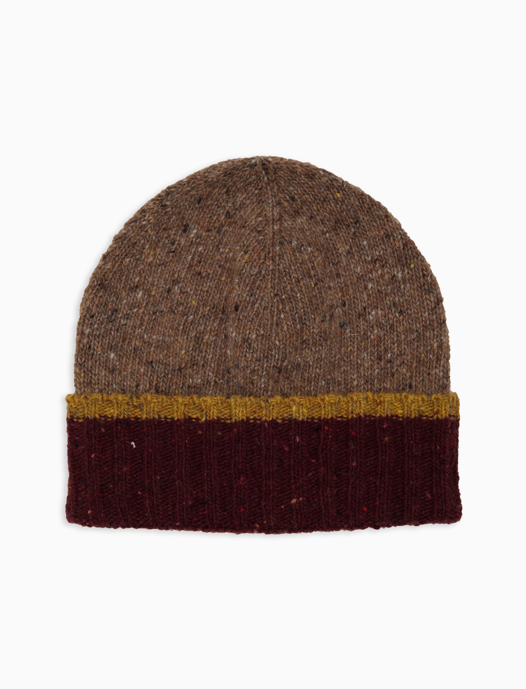 Men's plain beige ribbed wool beanie with contrasting cuff