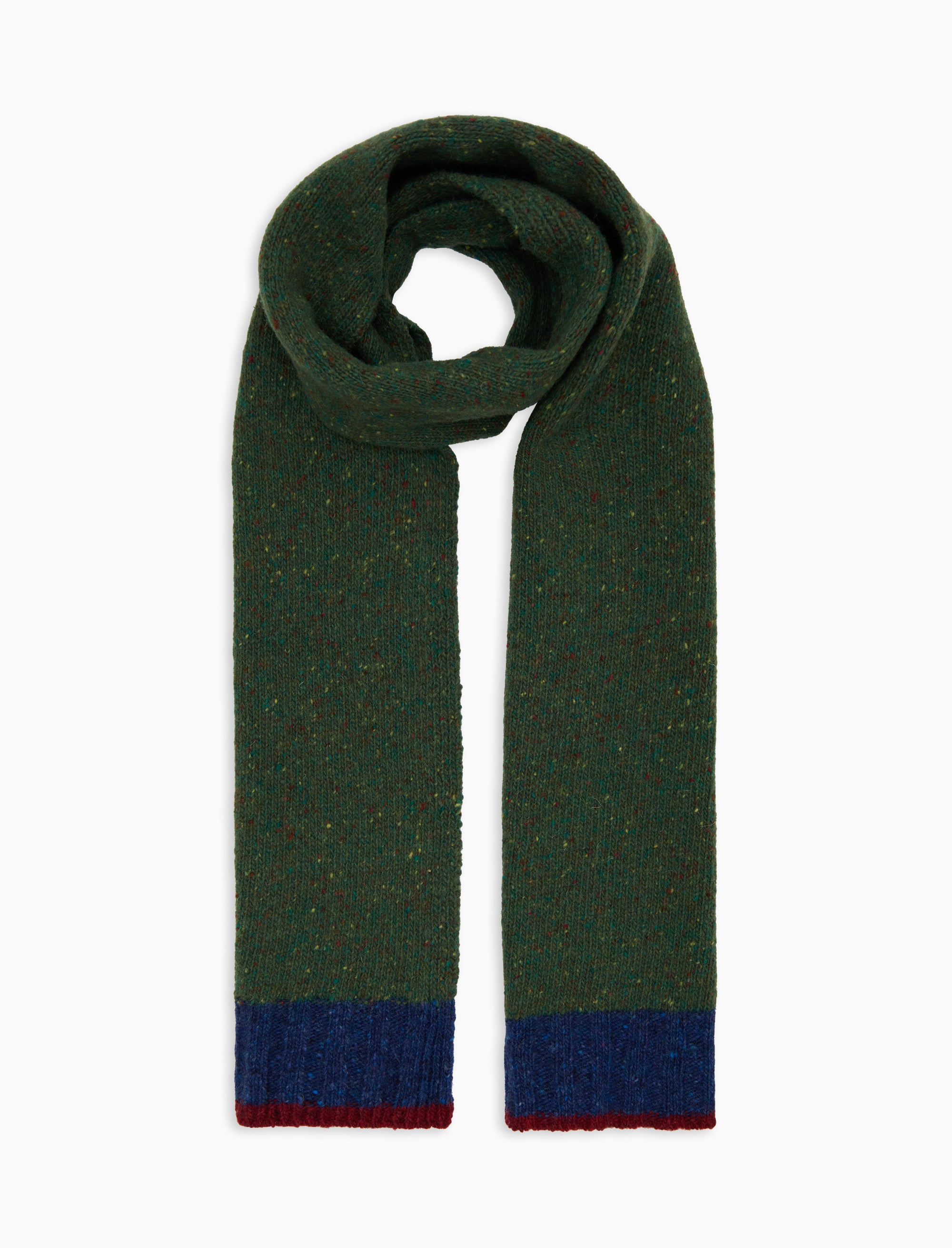 Men's plain green wool scarf with contrasting edge