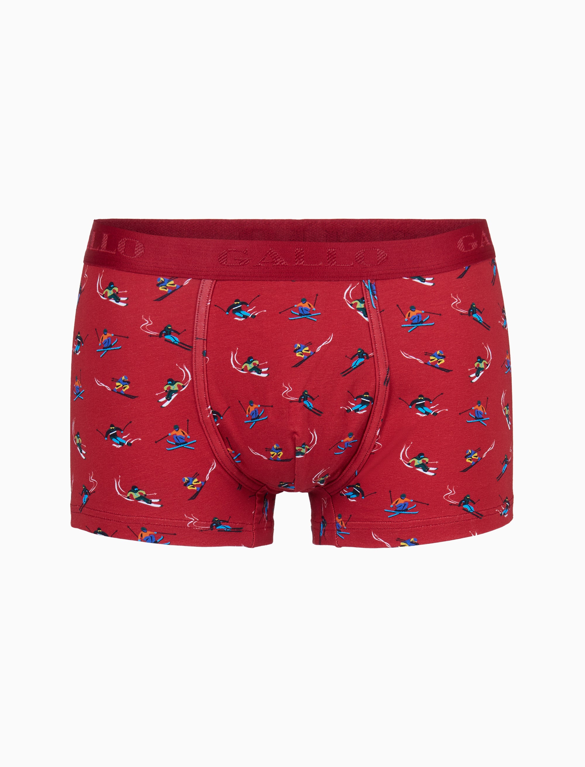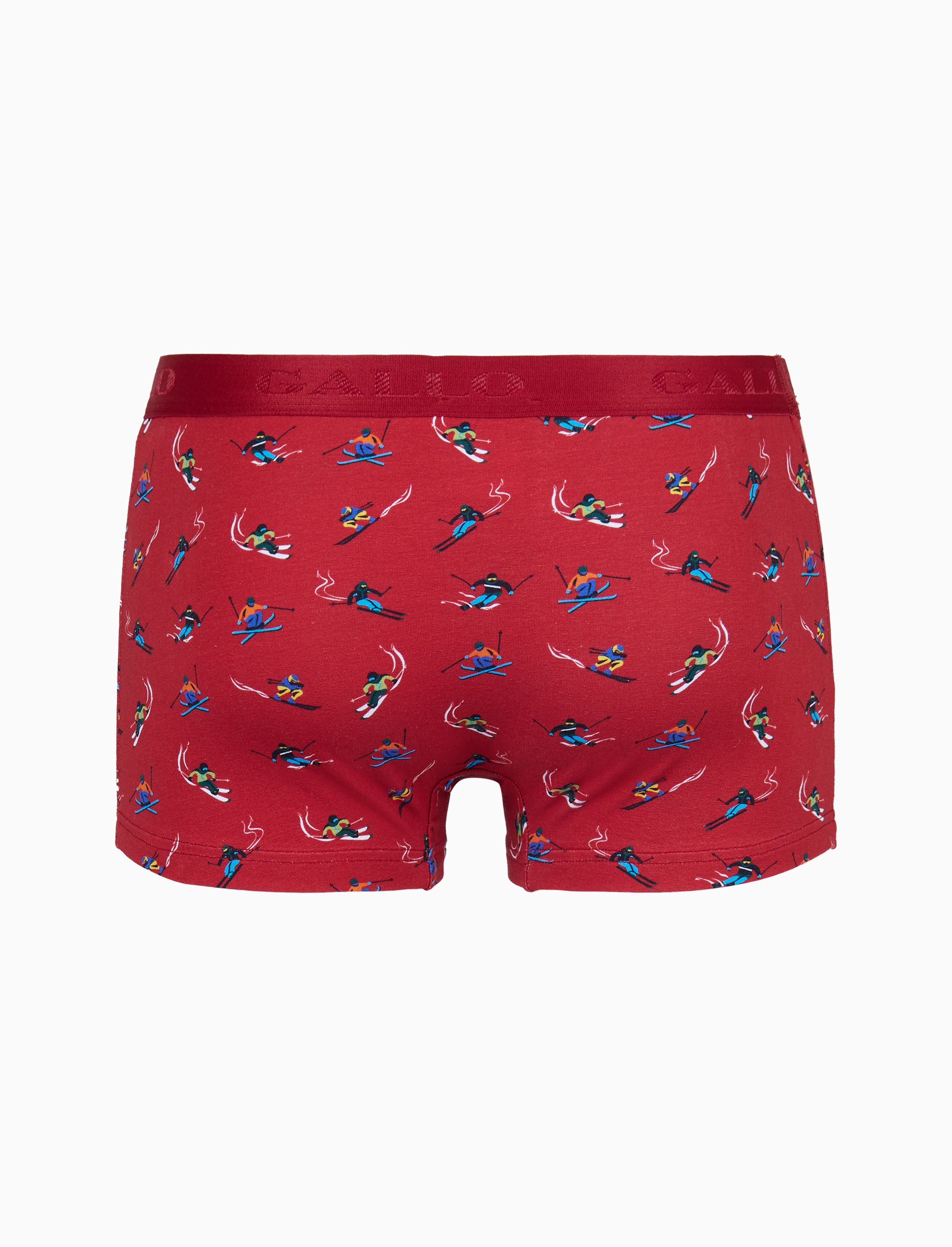 Men's red cotton boxer shorts with skier motif