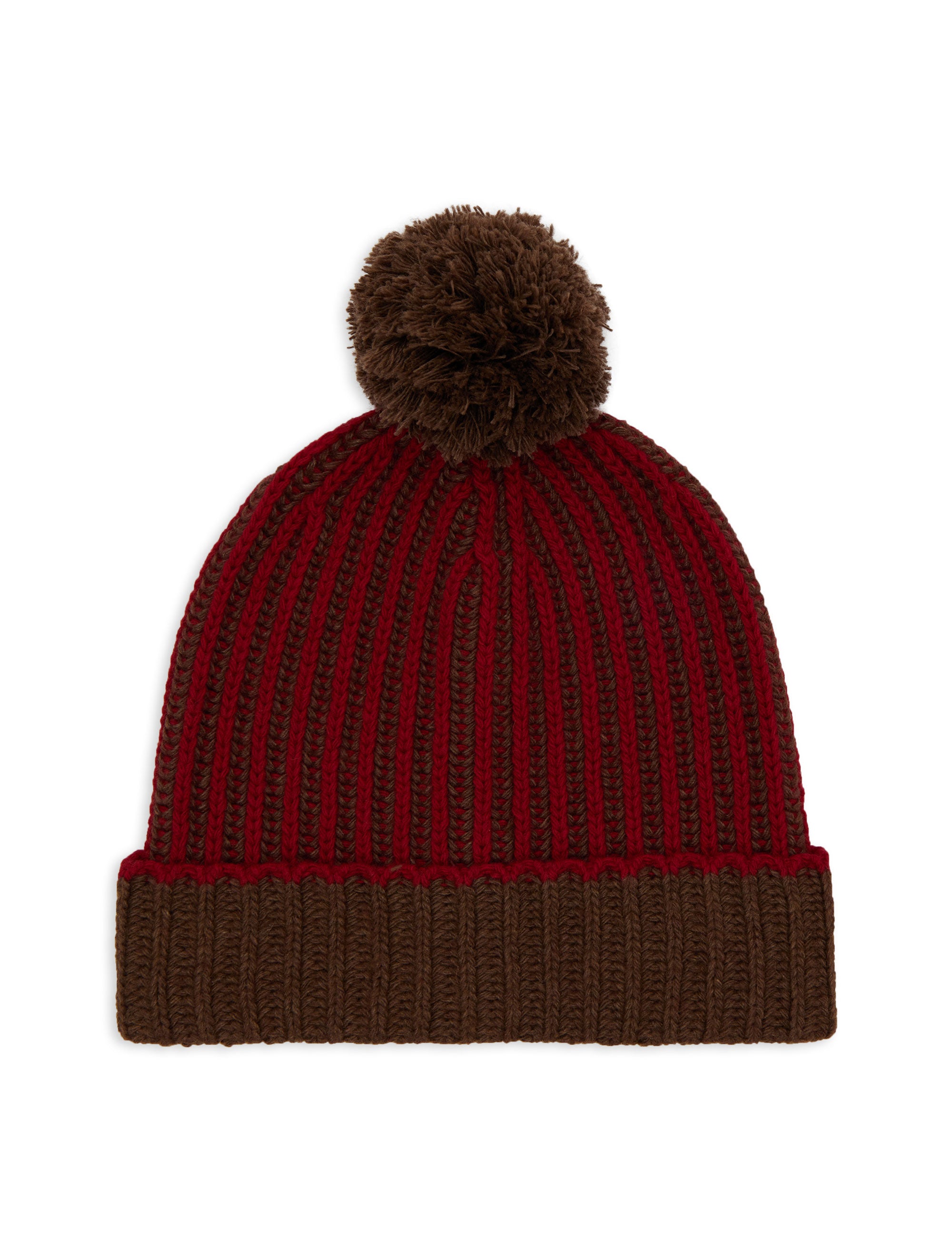 Unisex beanie in red wool and cashmere with cuff and two-tone plated fisherman's rib stitch