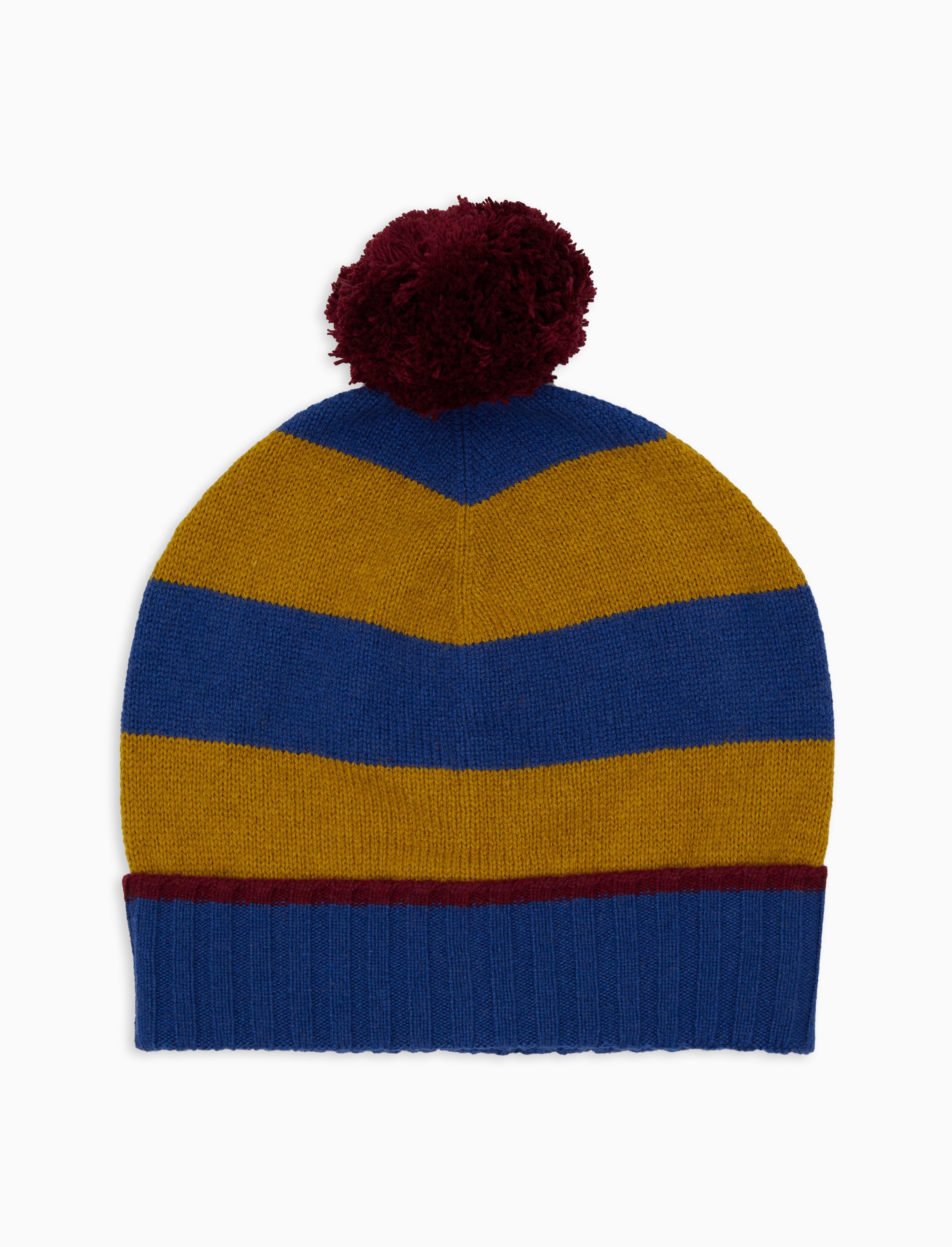 Unisex blue wool and cashmere beanie with two-tone stripes