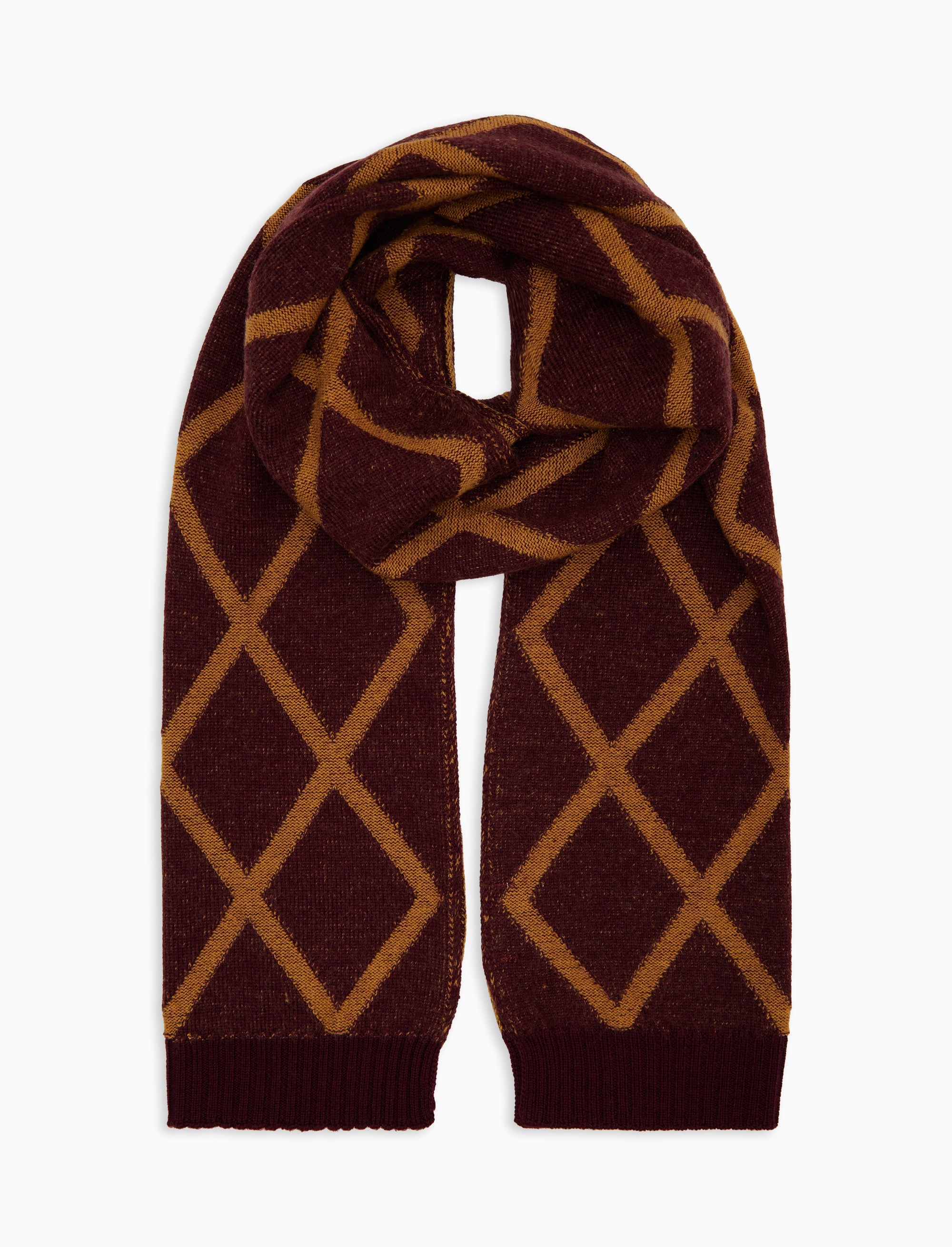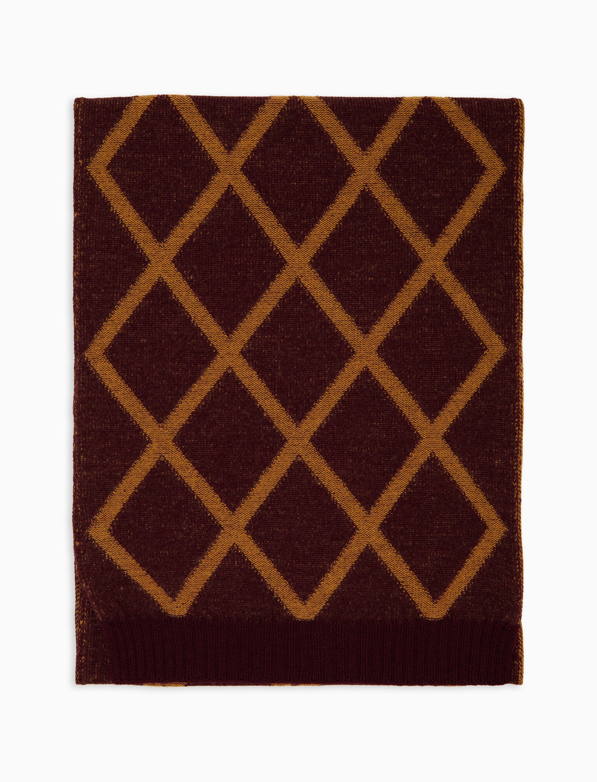 Unisex burgundy wool scarf with diamond pattern
