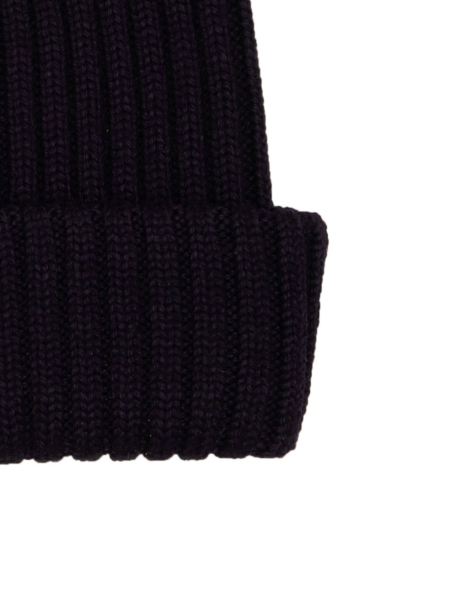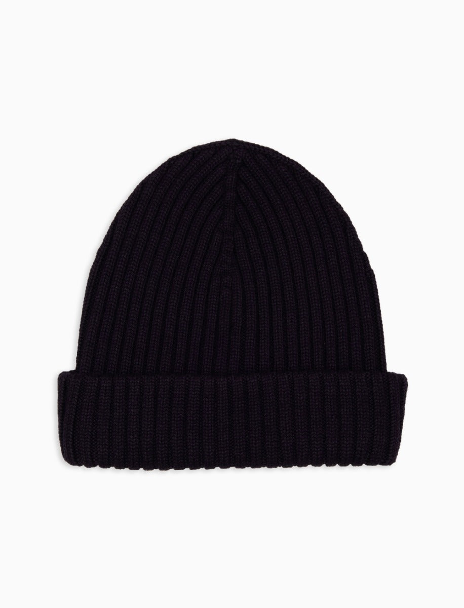 Unisex plain blue ribbed wool, silk and cashmere beanie