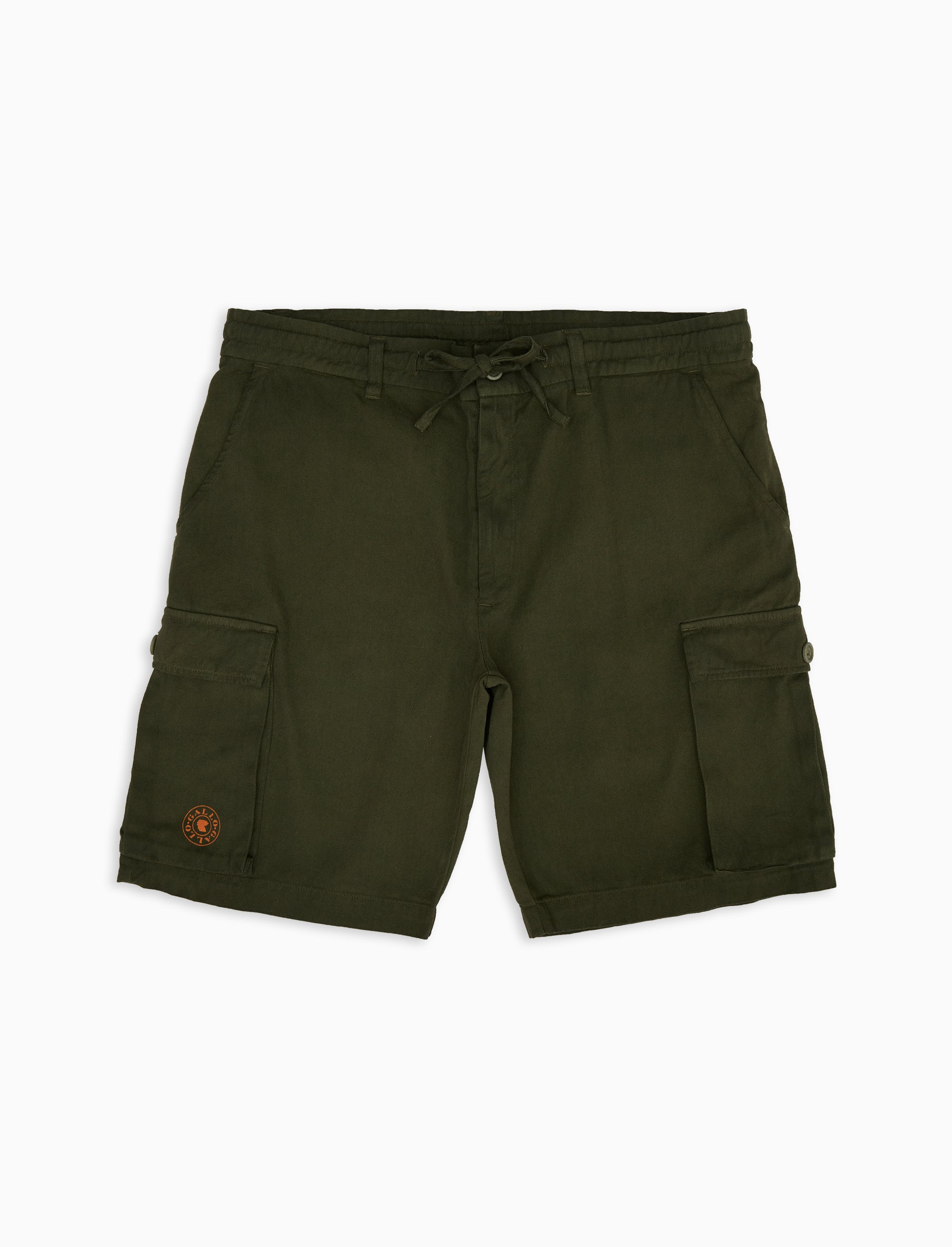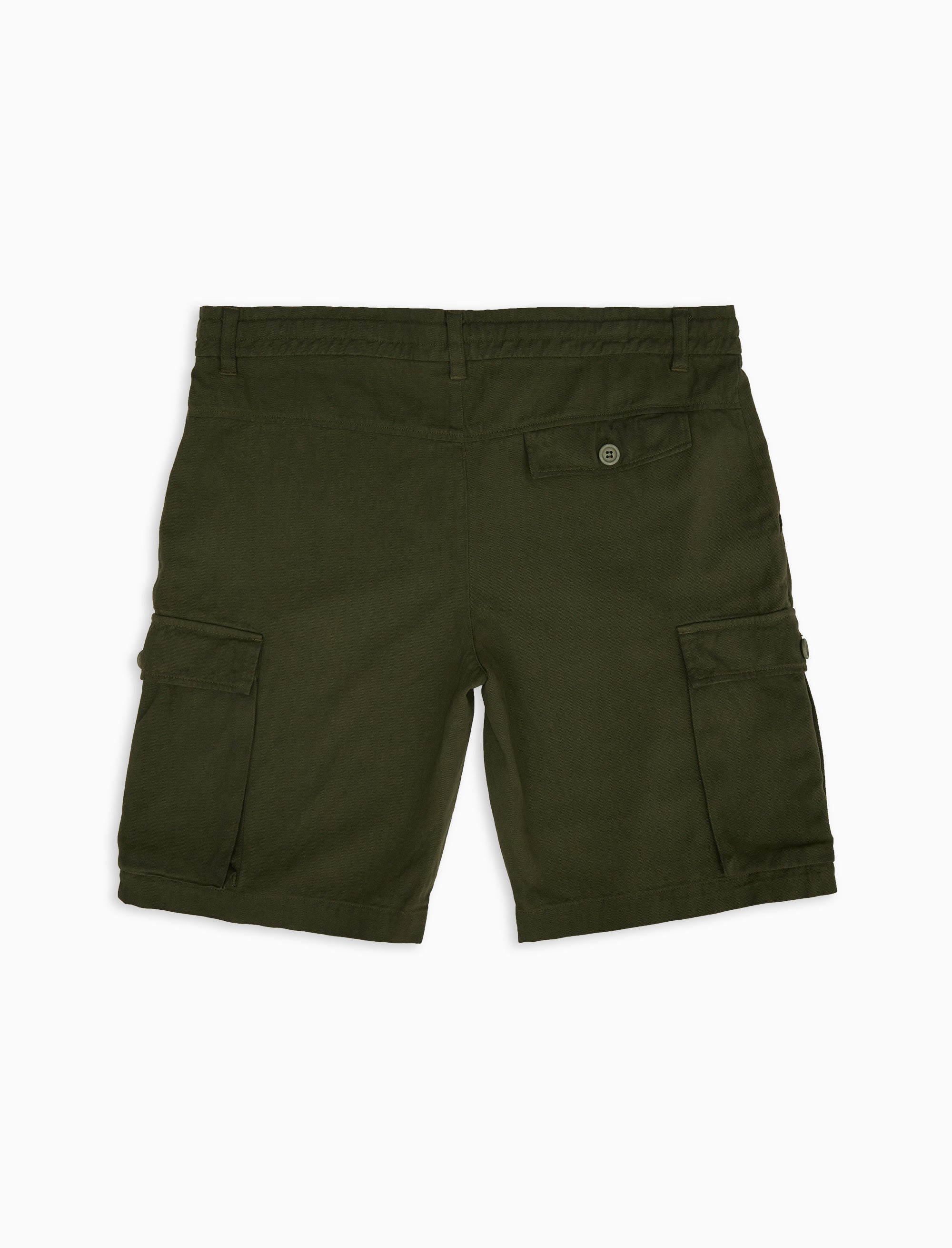 Unisex plain green garment-dyed cotton cargo shorts
