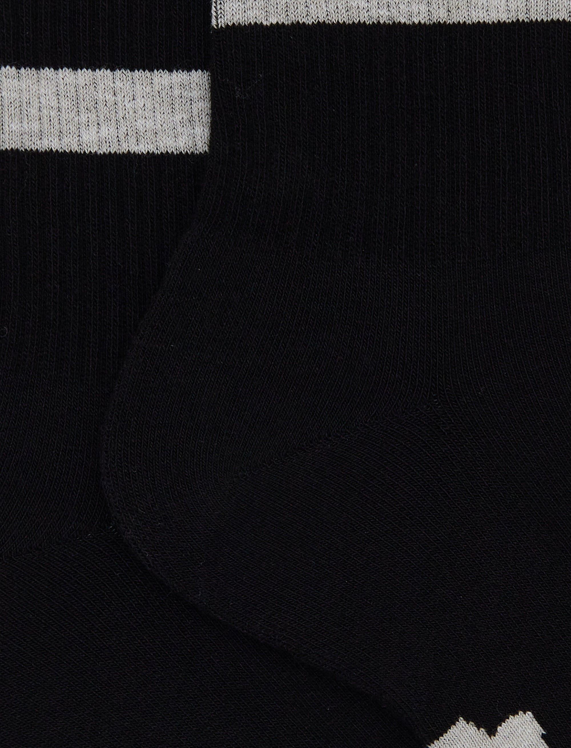 Unisex short black cotton terry socks with contrasting-colour stripes