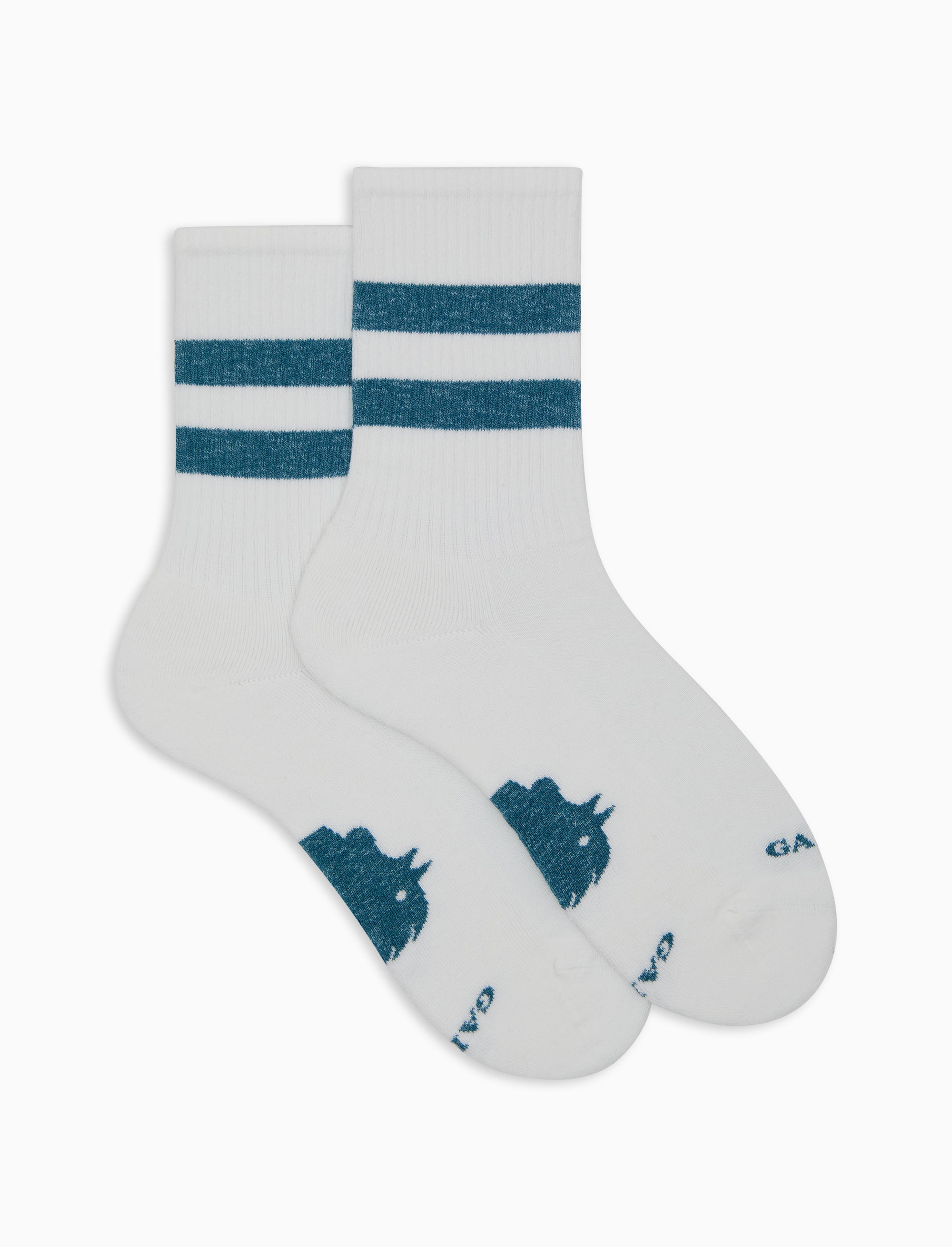 Calze corte unisex spugna di cotone bianco con righe in contrasto di colore - Gallo 1927 - Official Online Shop