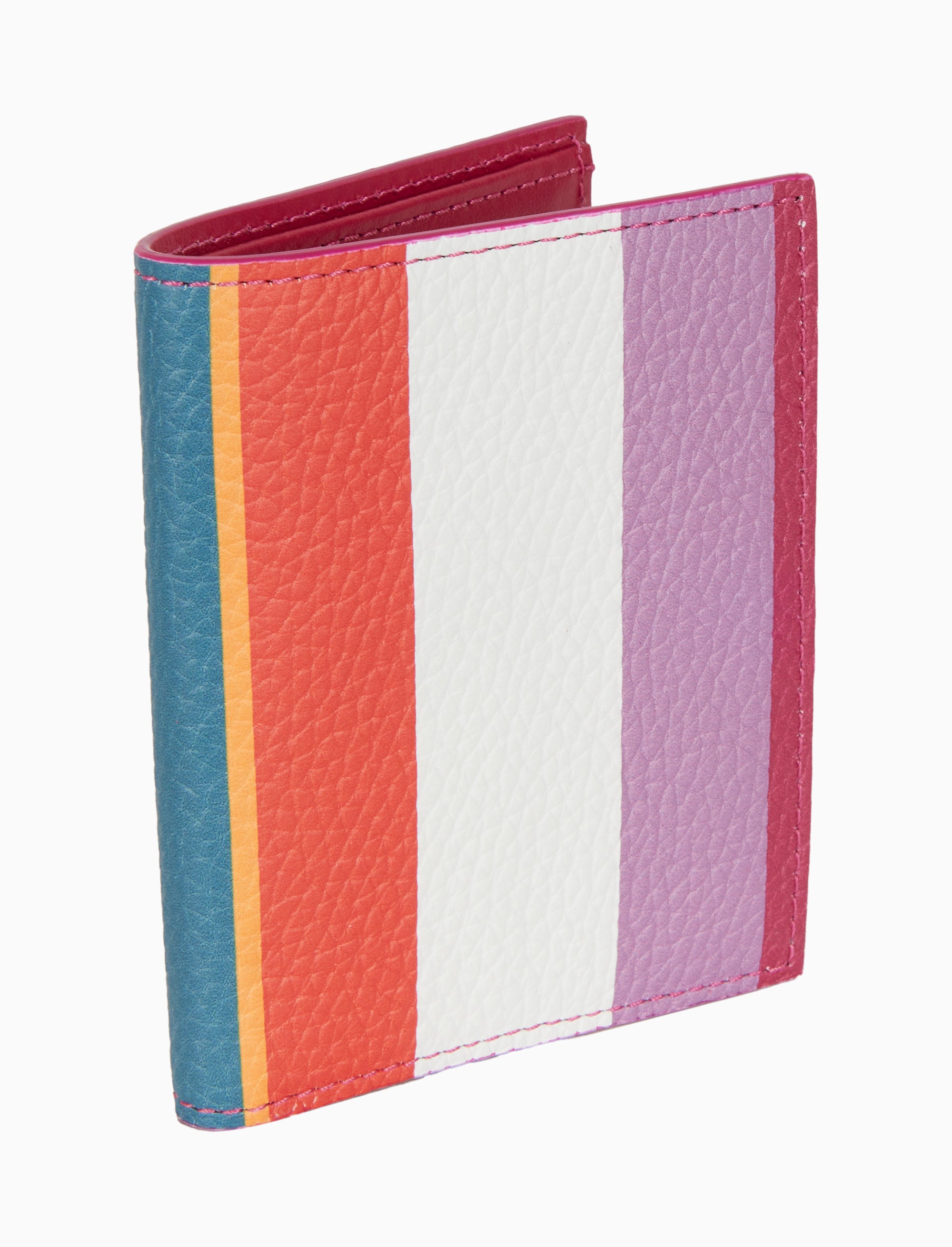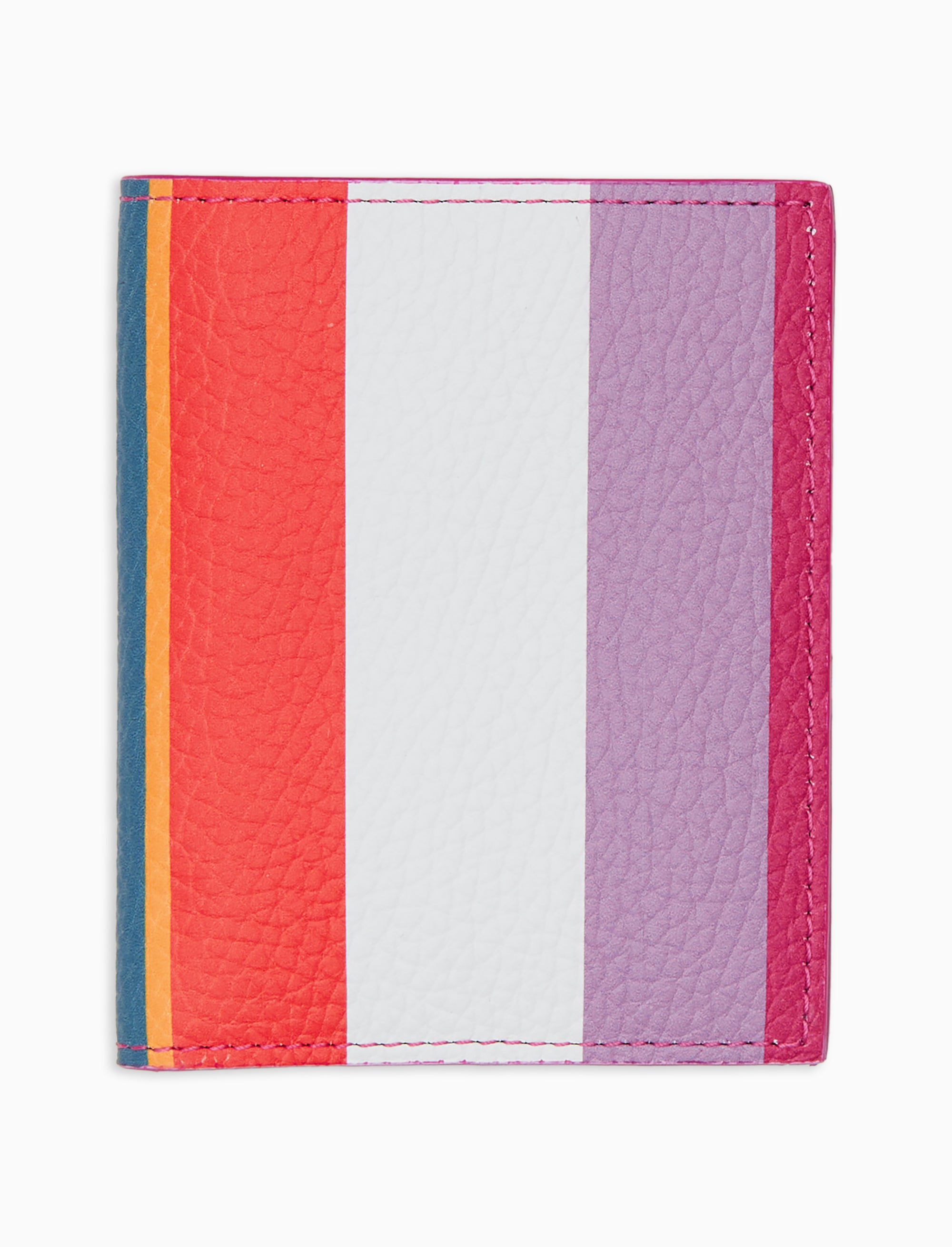 Unisex white hammered leather card holder with multicolor stripes