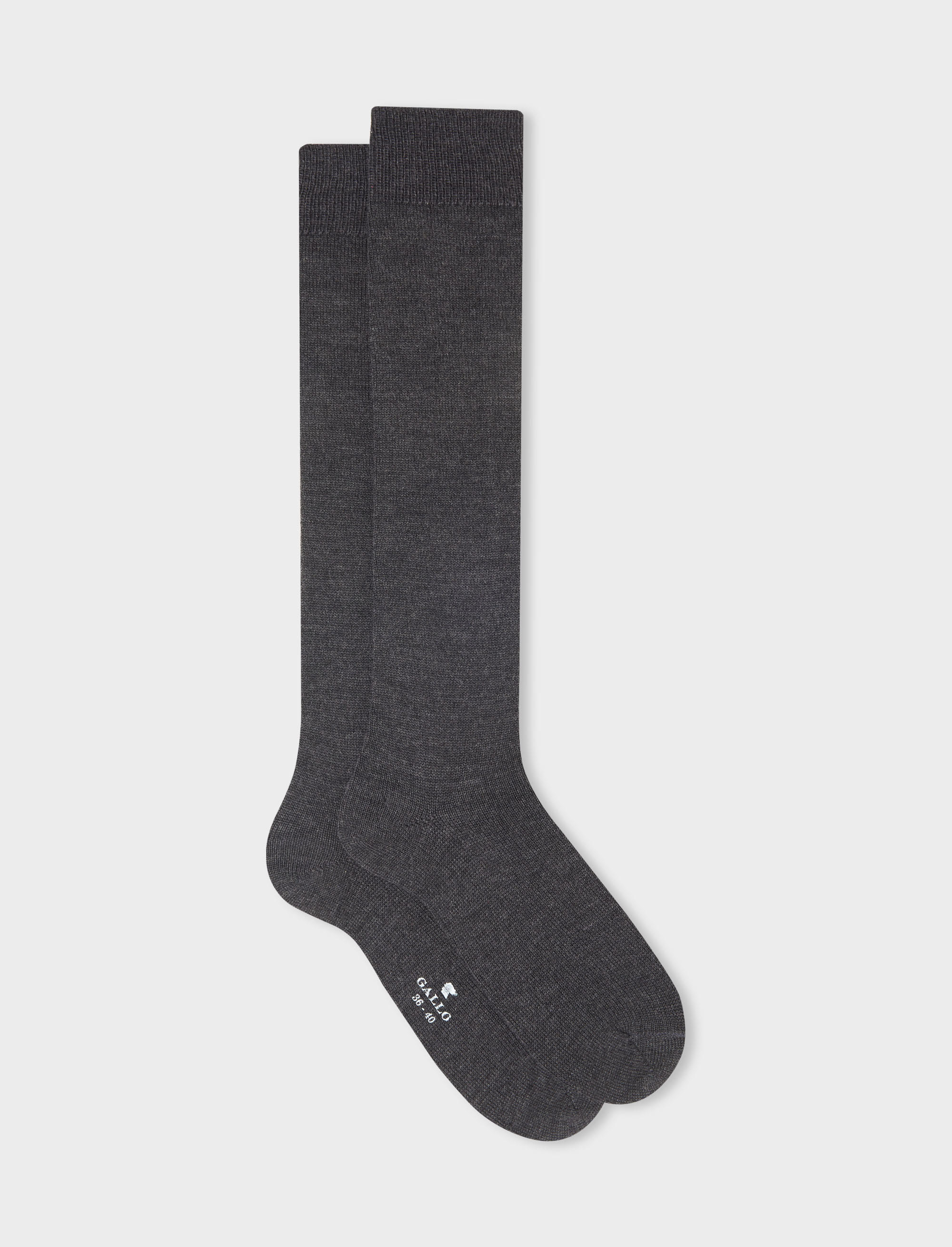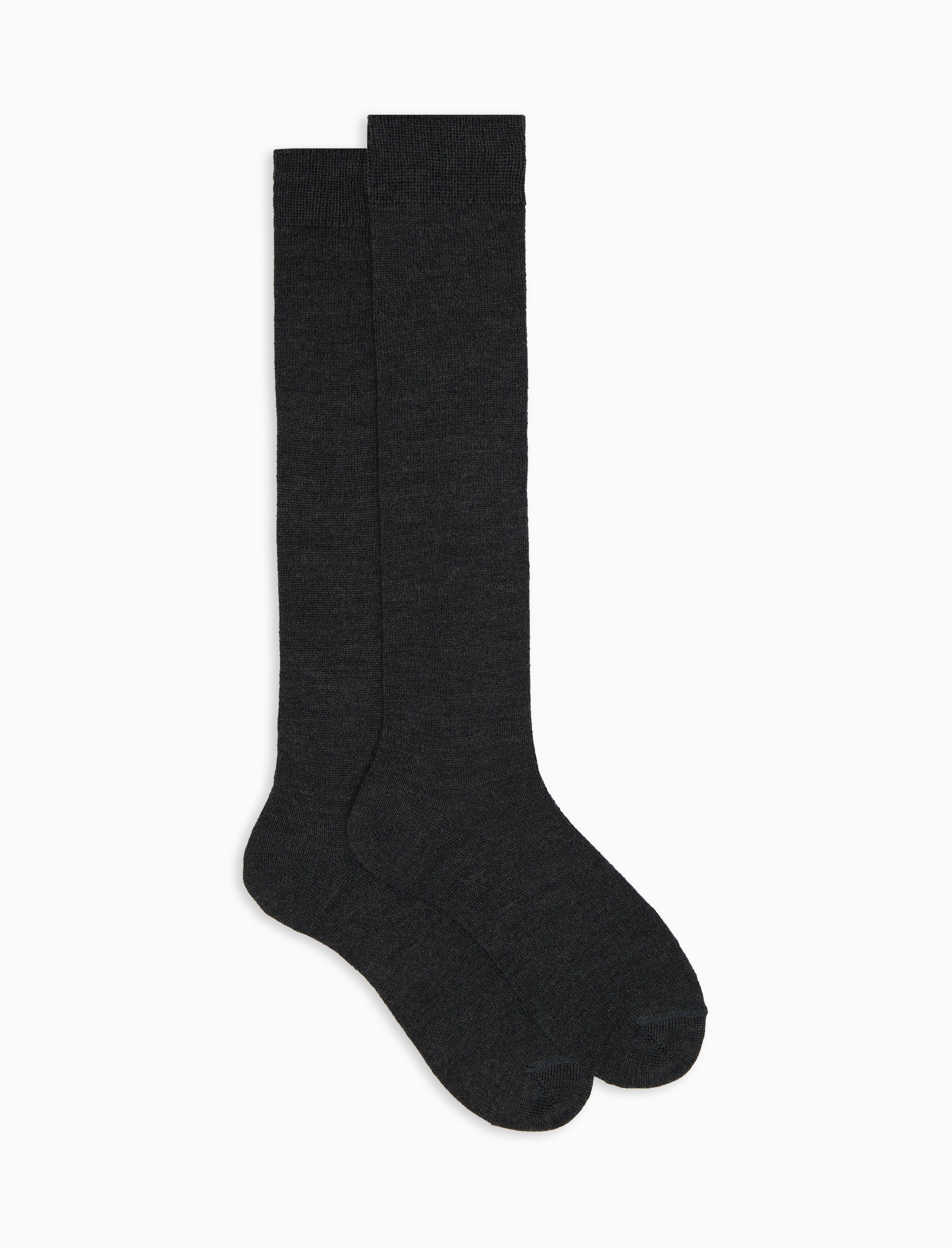 Women's long plain charcoal grey socks in wool, silk and cashmere