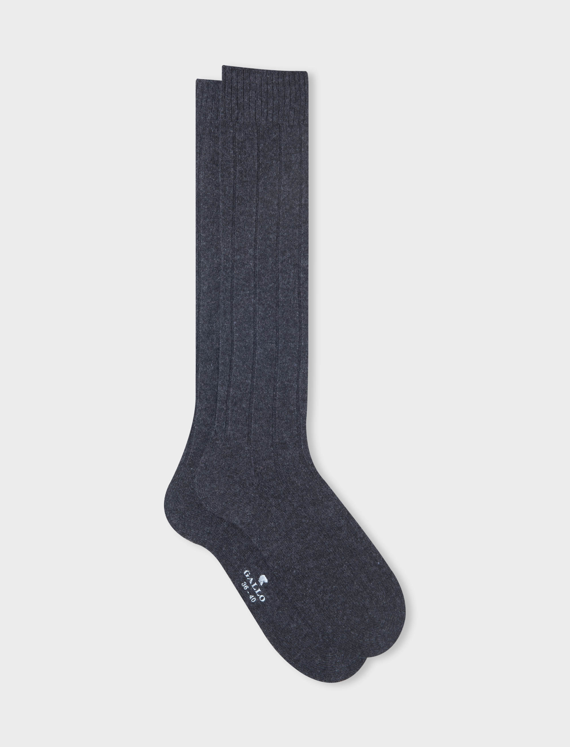 Women’s long plain grey ribbed cashmere socks