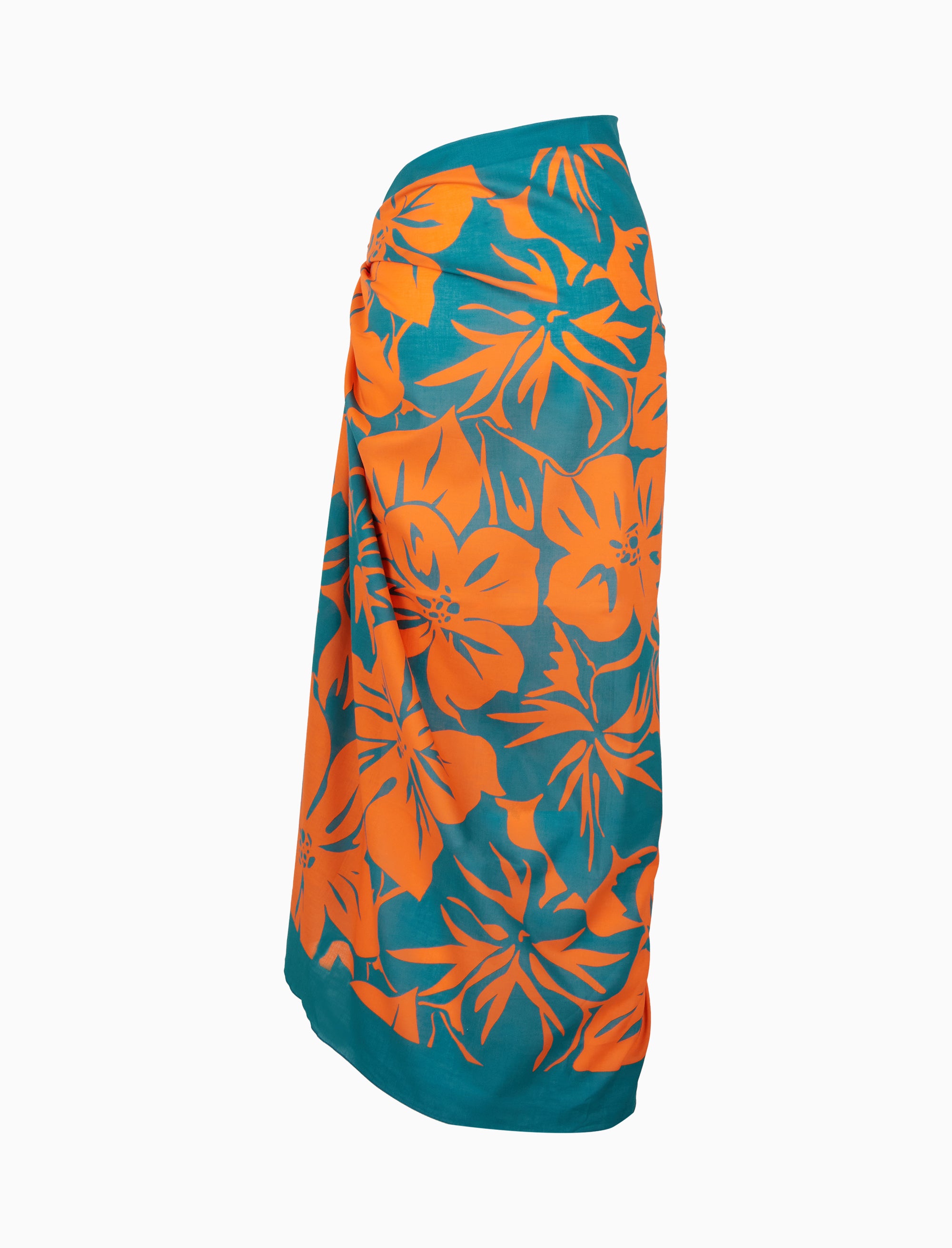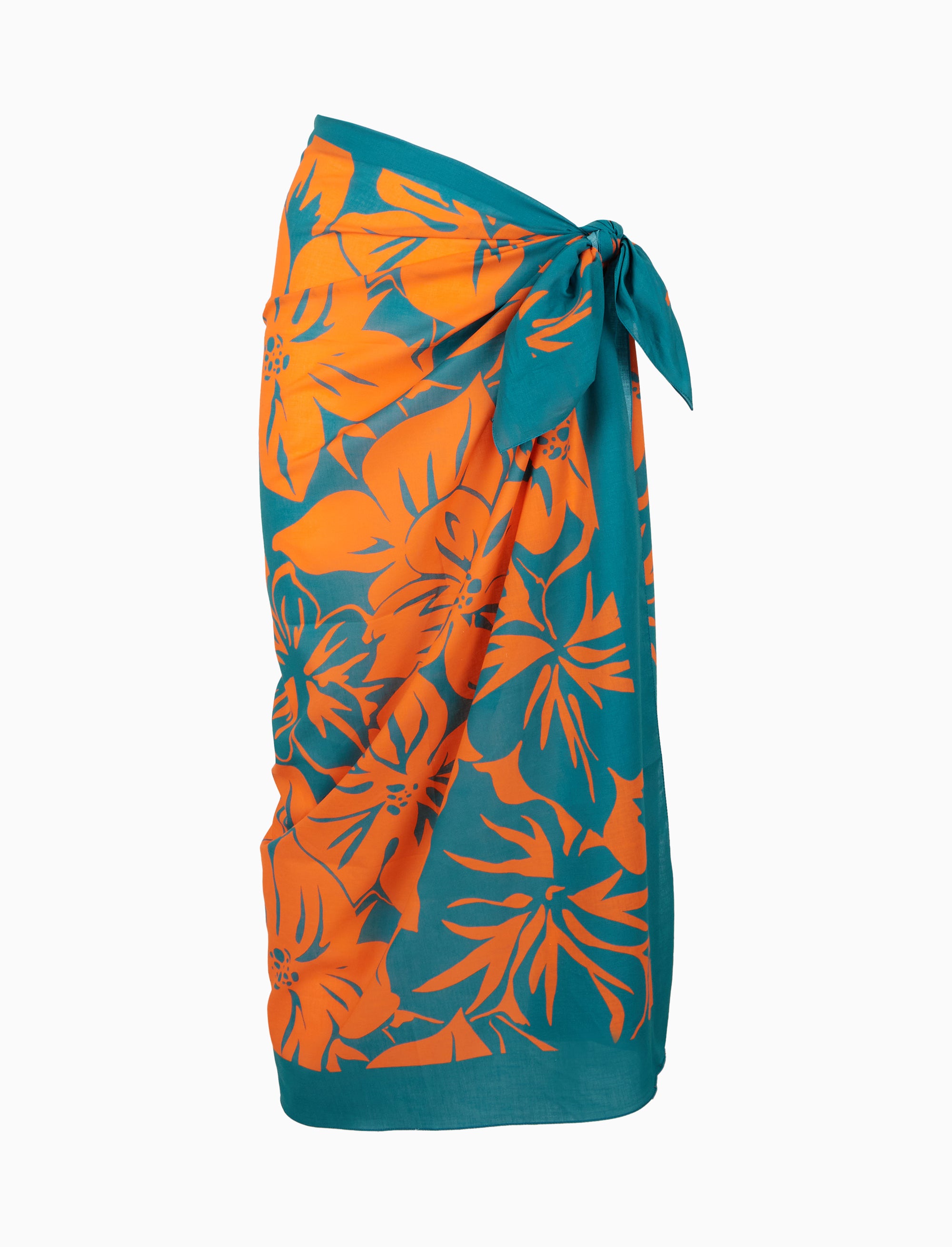 Women's 100% cotton pareo with an orange floral design. Designed for those who love a lively and floral style.