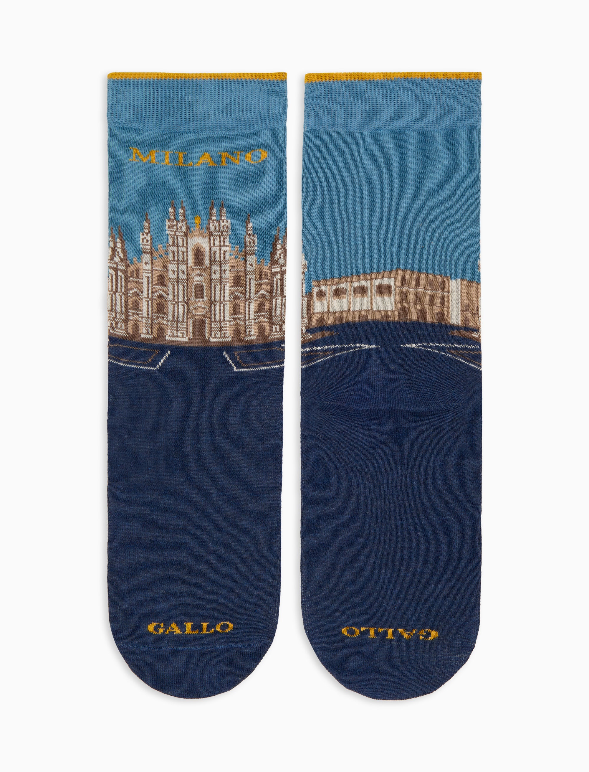 Women's short cotton socks, blue with Duomo di Milano pattern