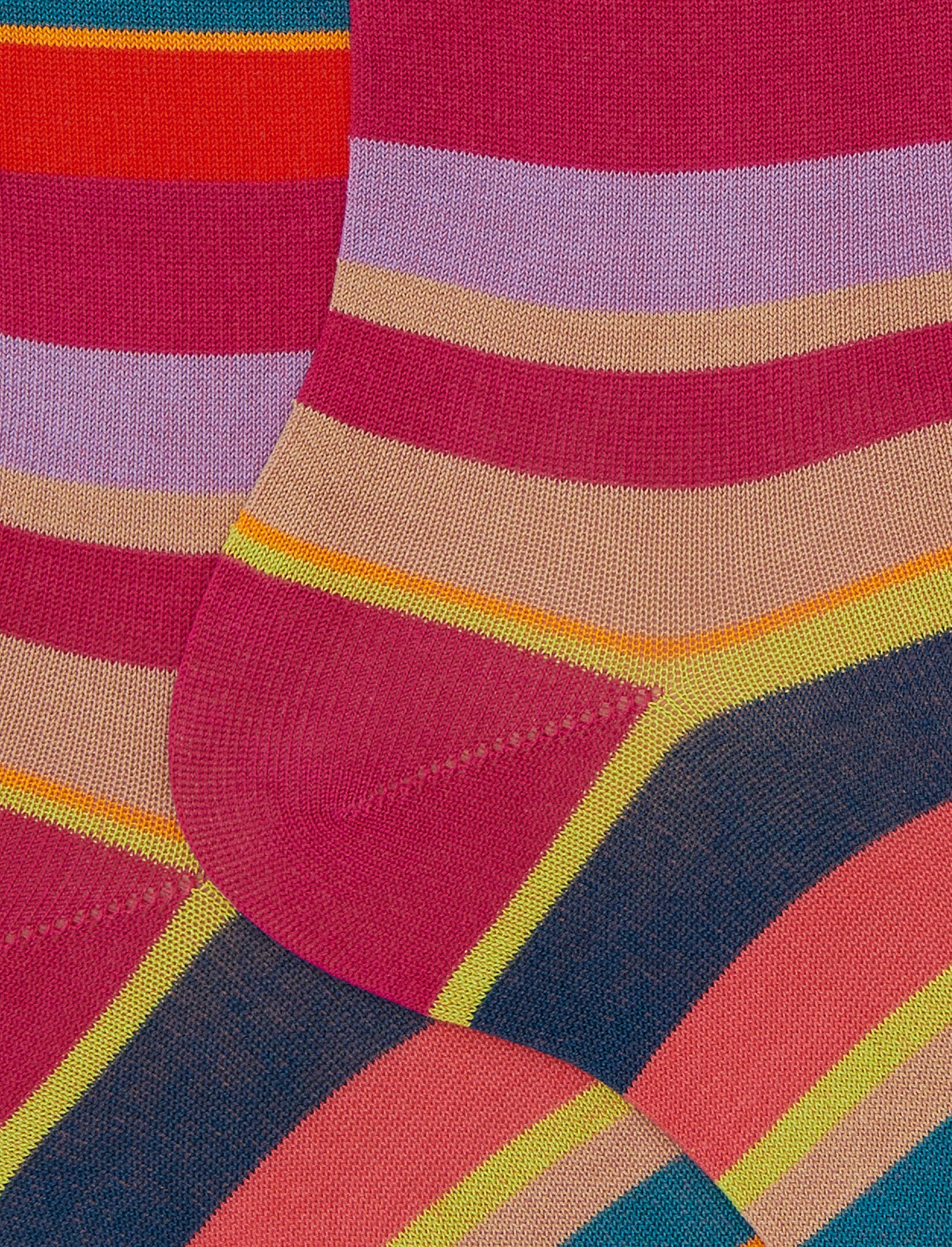Women's short fuchsia cotton socks with multicoloured stripes