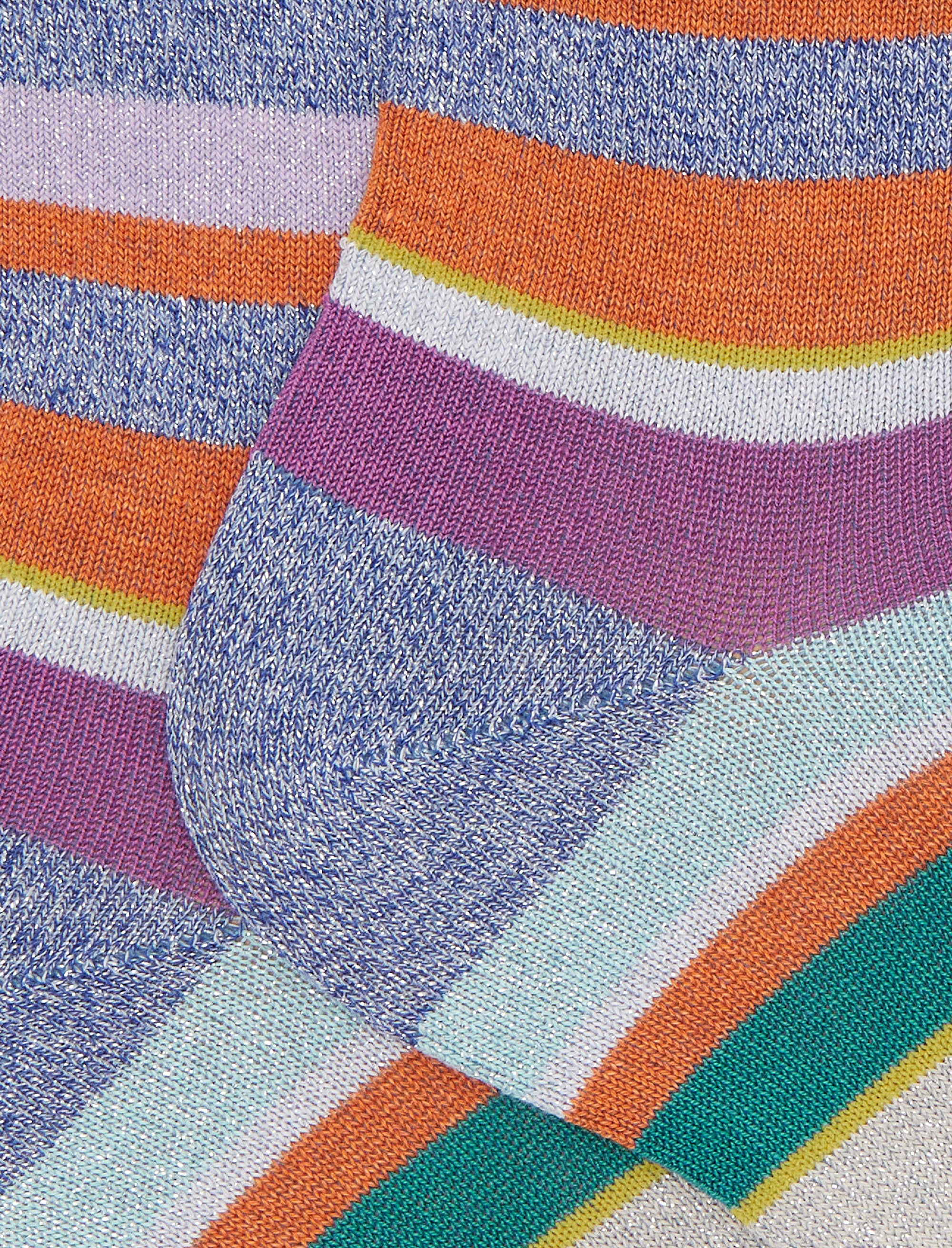 Women's short light blue cotton socks with multicoloured glitter stripes