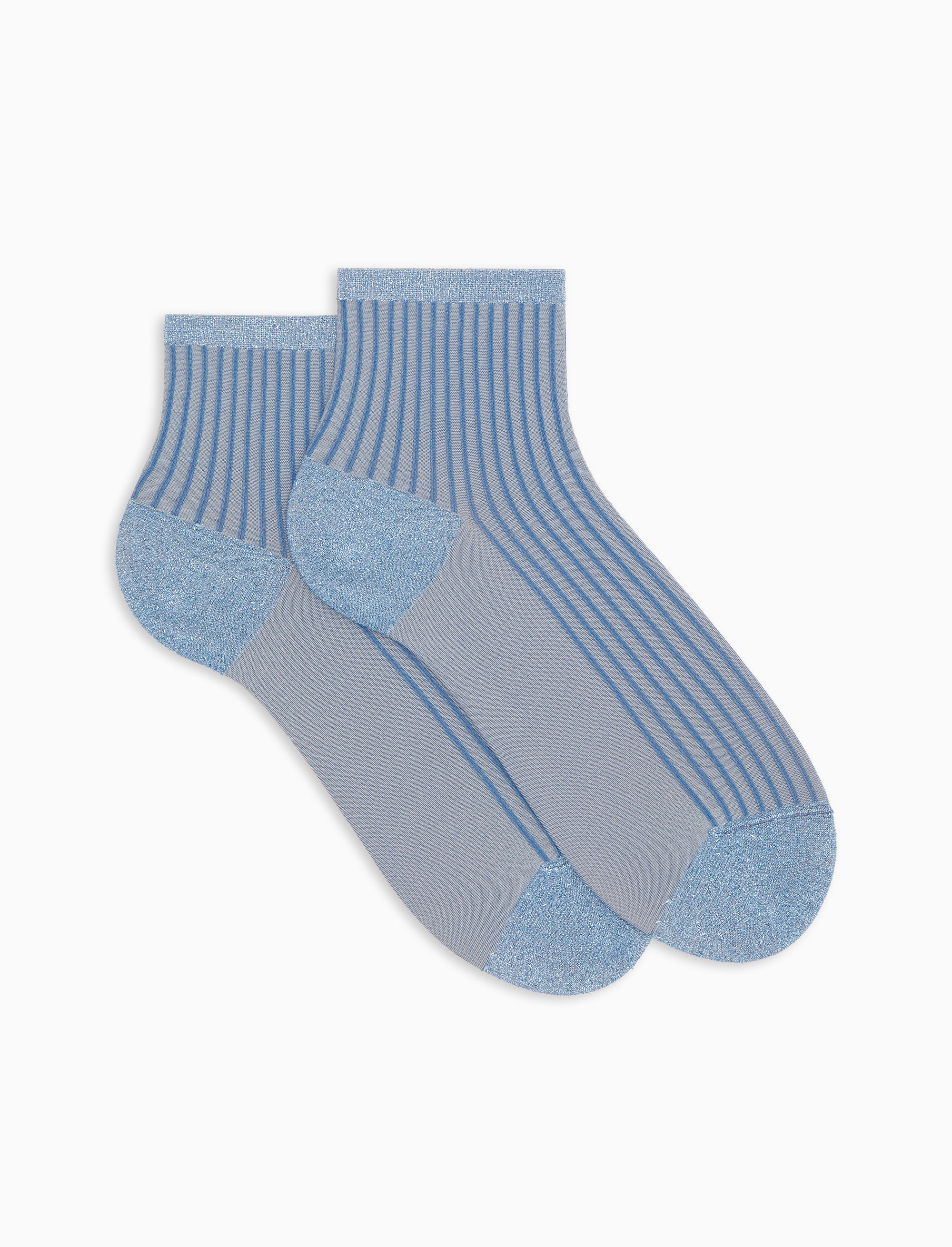 Women's super short light blue polyamide and glitter twin-rib socks