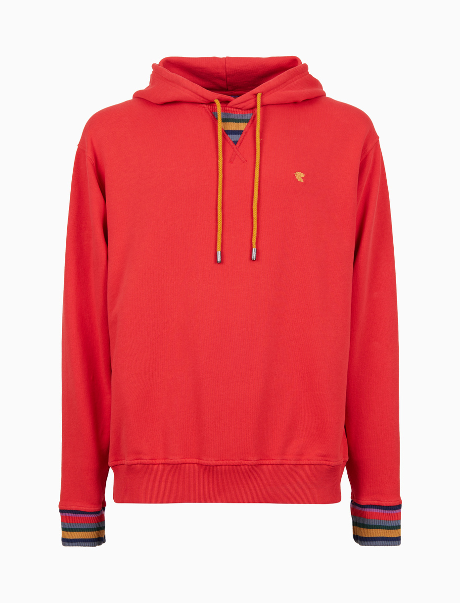 Felpa con cappuccio unisex cotone tinto capo tinta unita rosso con inserti multicolor