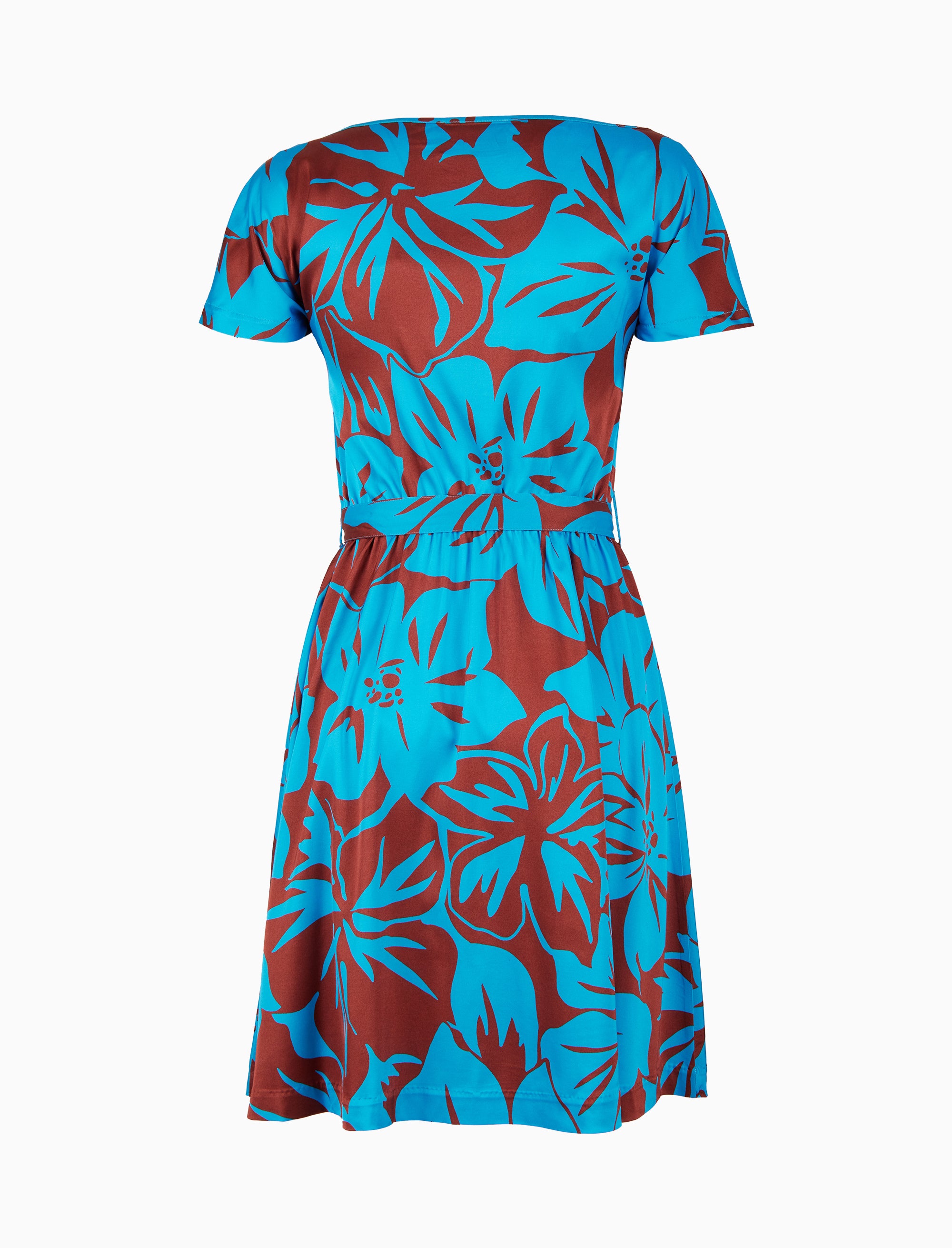 Abito corto con cintura maniche corte donna fantasia fiori azzurro