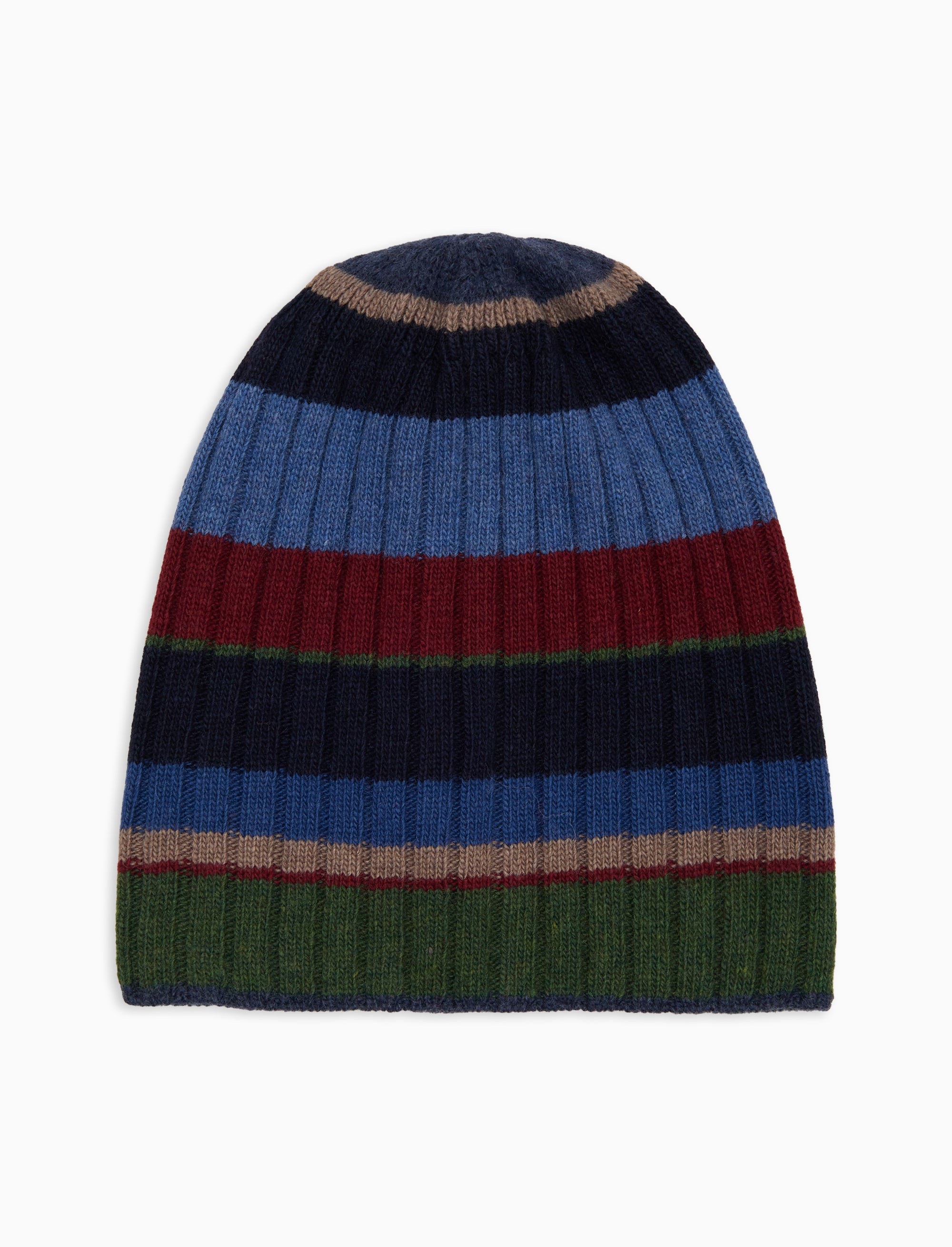 Calotta unisex lana e cashmere blu righe multicolor - Gallo 1927 - Official Online Shop