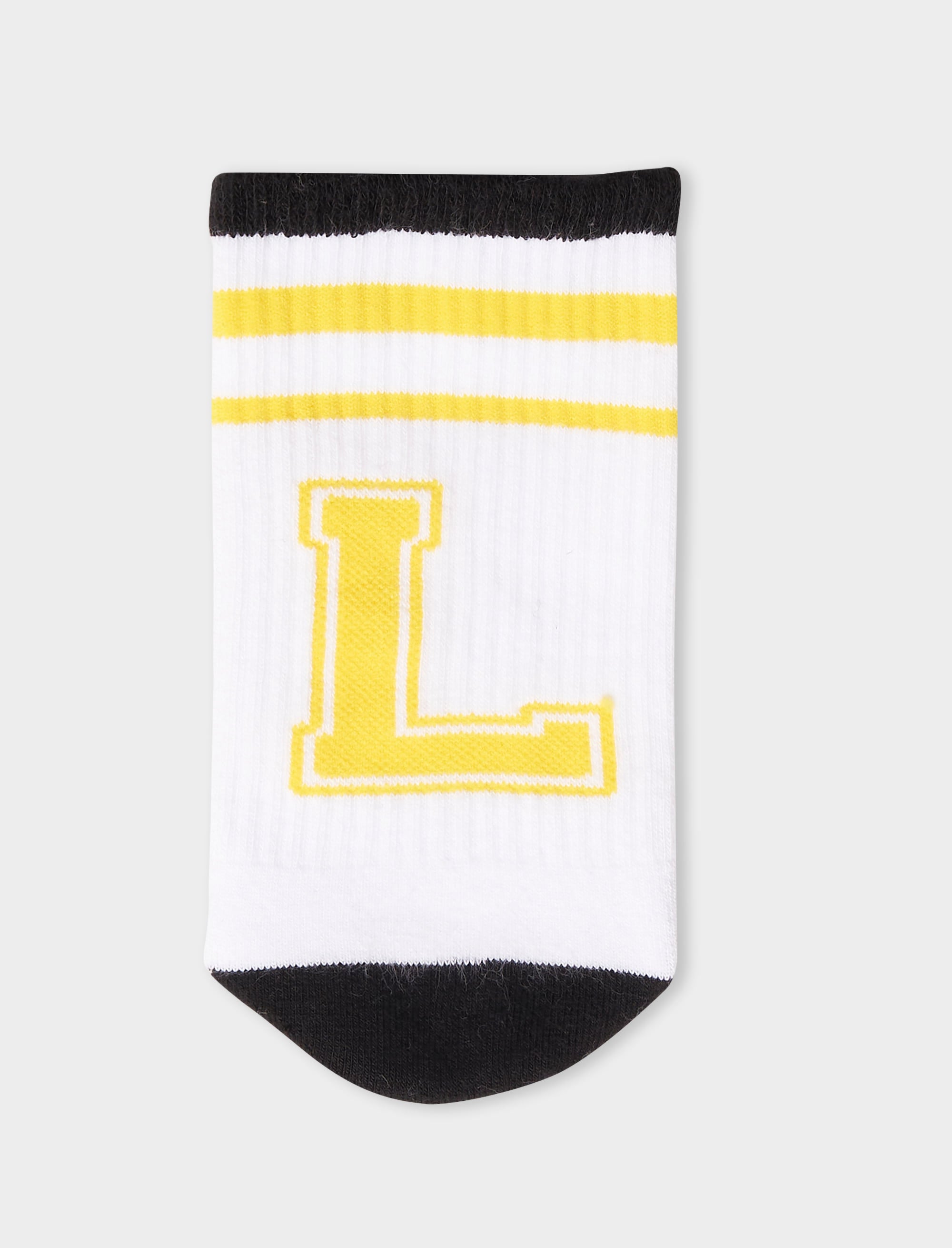 Calza corta unisex spugna di cotone bianco tinta unita con lettera L. Venduta singolarmente.