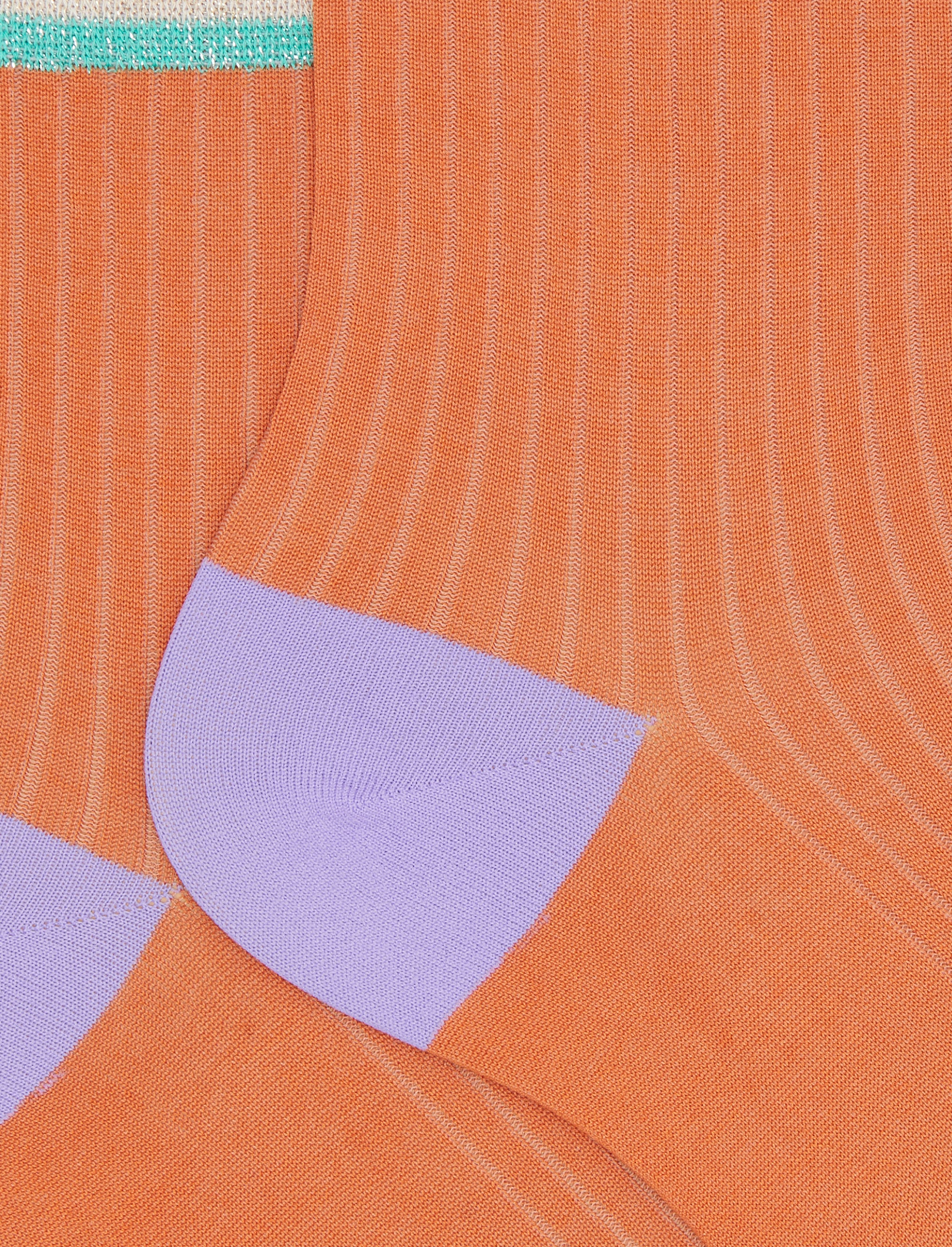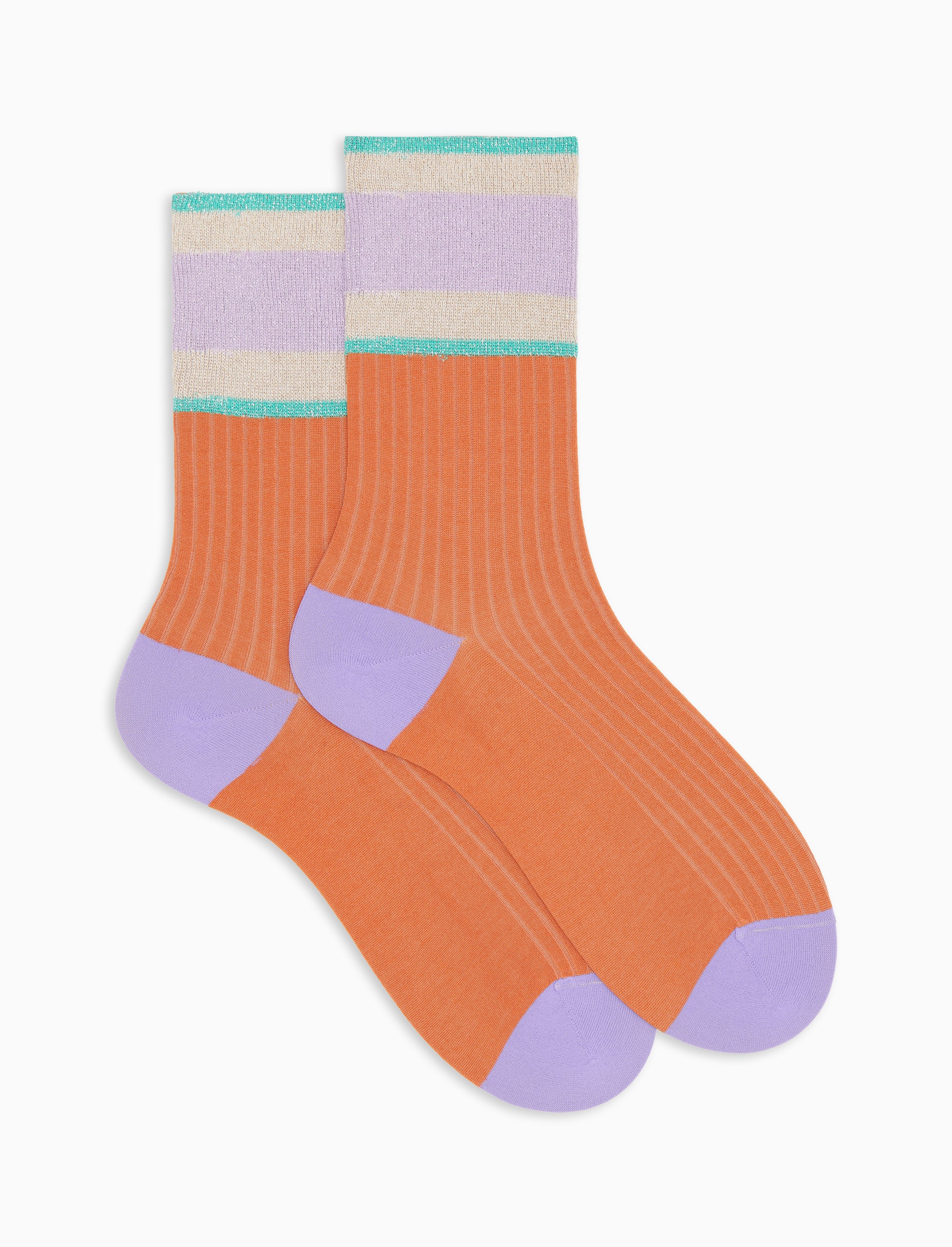 Calze corte donna cotone arancio tinta unita a coste polso righe effetto scintillante