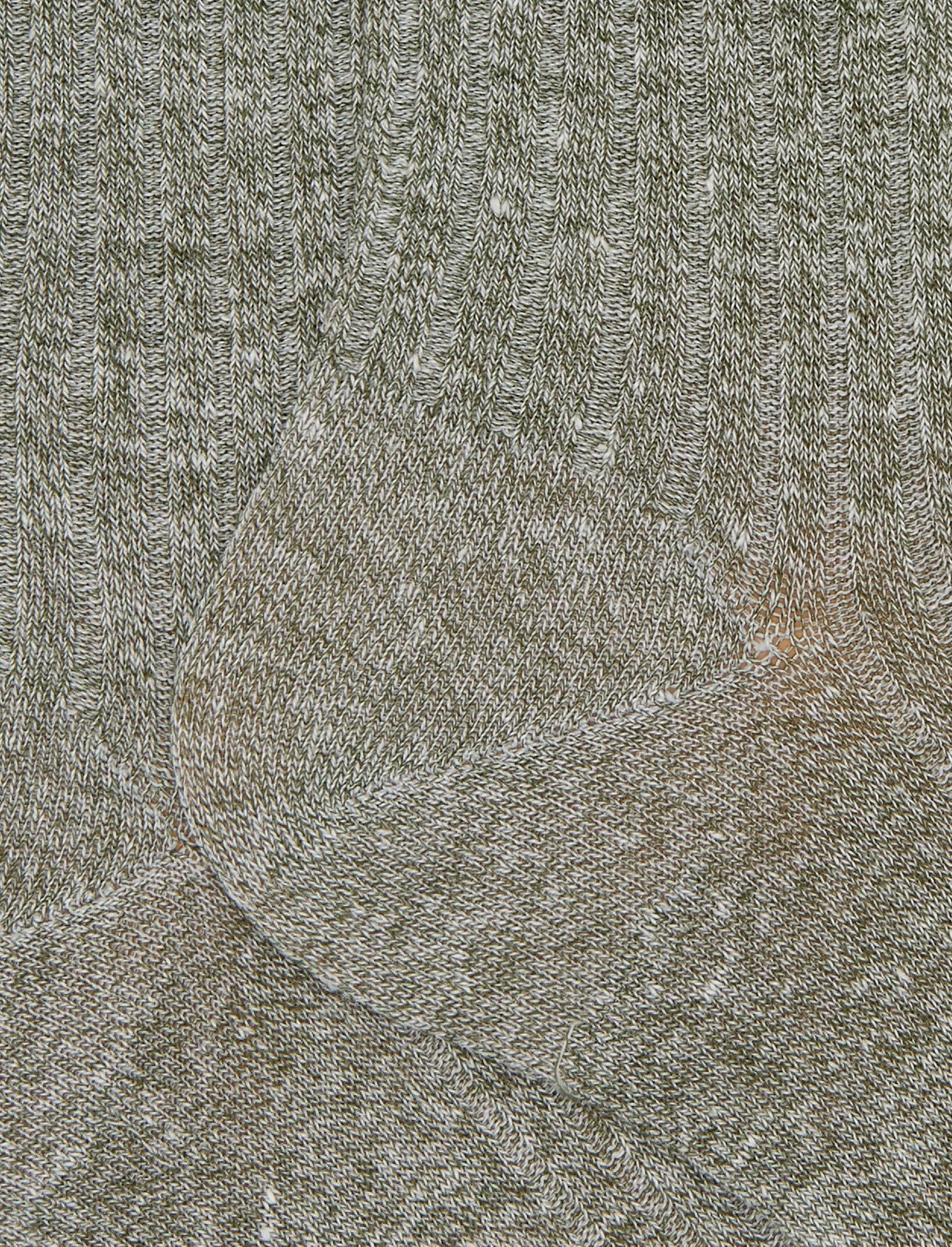 Calze corte da donna realizzate con una raffinata miscela di cotone e lino, caratterizzate da una delicata costa in tinta unita verde. L'eleganza del design si sposa con la leggerezza dei materiali, evocando un senso di comfort e stile senza tempo. Ogni paio è realizzato con maestria, riflettendo la tradizione artigianale di GALLO. Realizzate in Italia, sinonimo di qualità ed eccellenza GALLO.