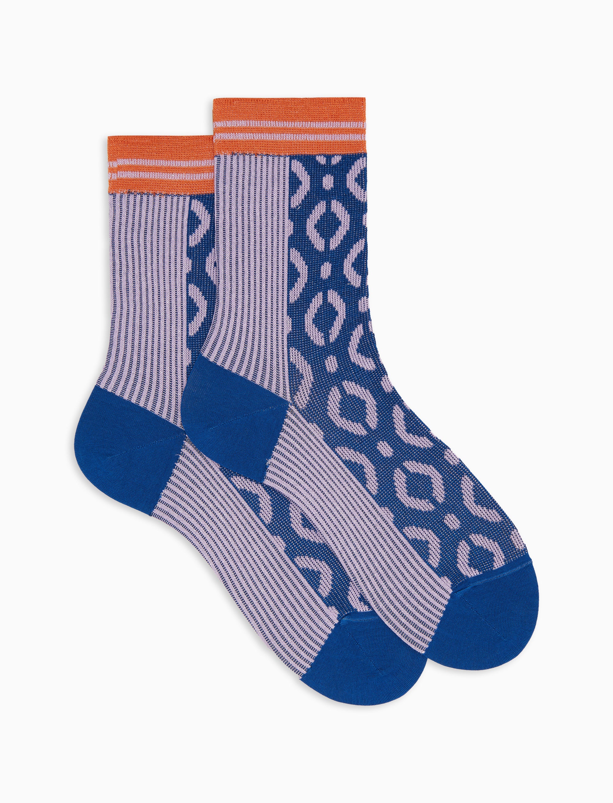 Calze corte donna cotone effetto scintillante fantasia geometrico blu