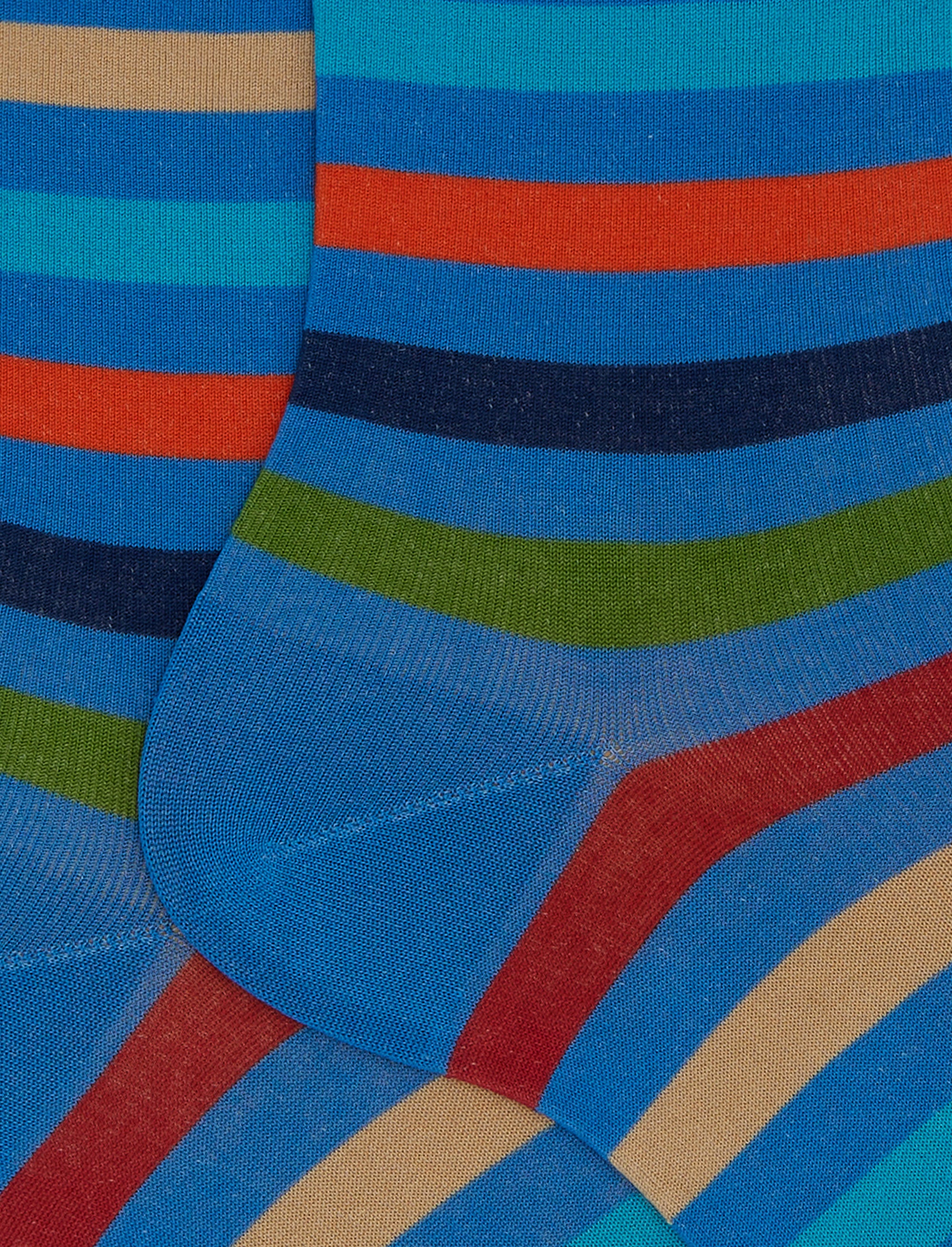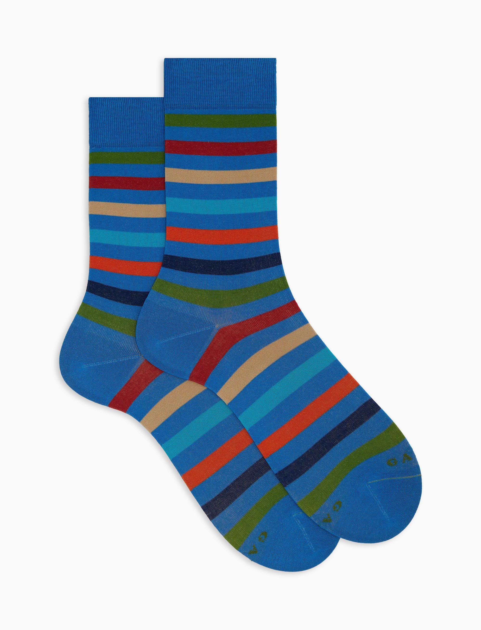 Calze corte da donna realizzate in Italia in cotone leggerissimo elasticizzato. Iconica fantasia a righe pari nei toni dell'azzurro. Vestibilità perfetta Gallo, dal 1927 sinonimo di qualità ed eccellenza italiana. Da indossare tutti i giorni con ogni tipo di calzatura, sportiva o casual.