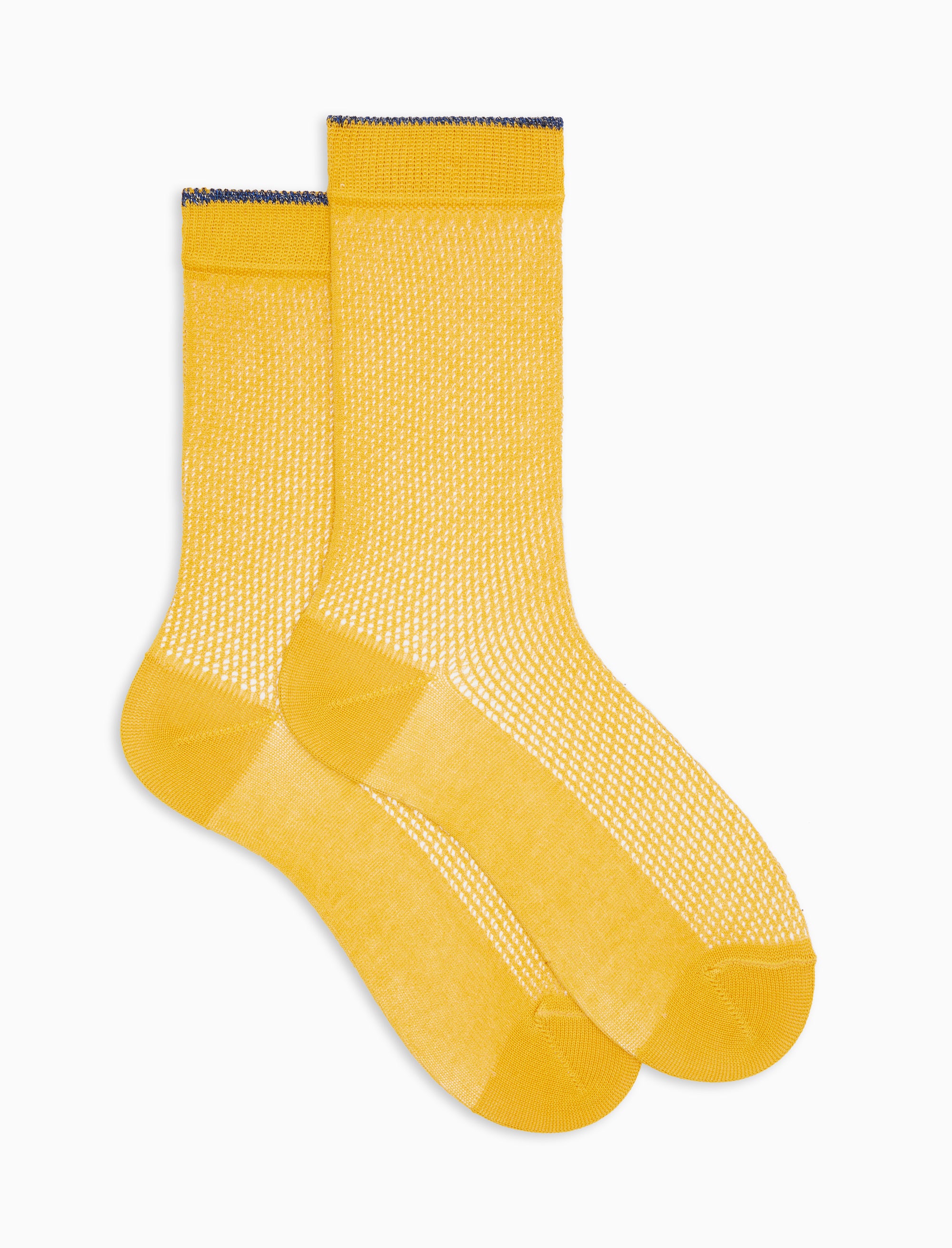 Calze corte donna cotone traforate tinta unita giallo con bordino effetto scintillante