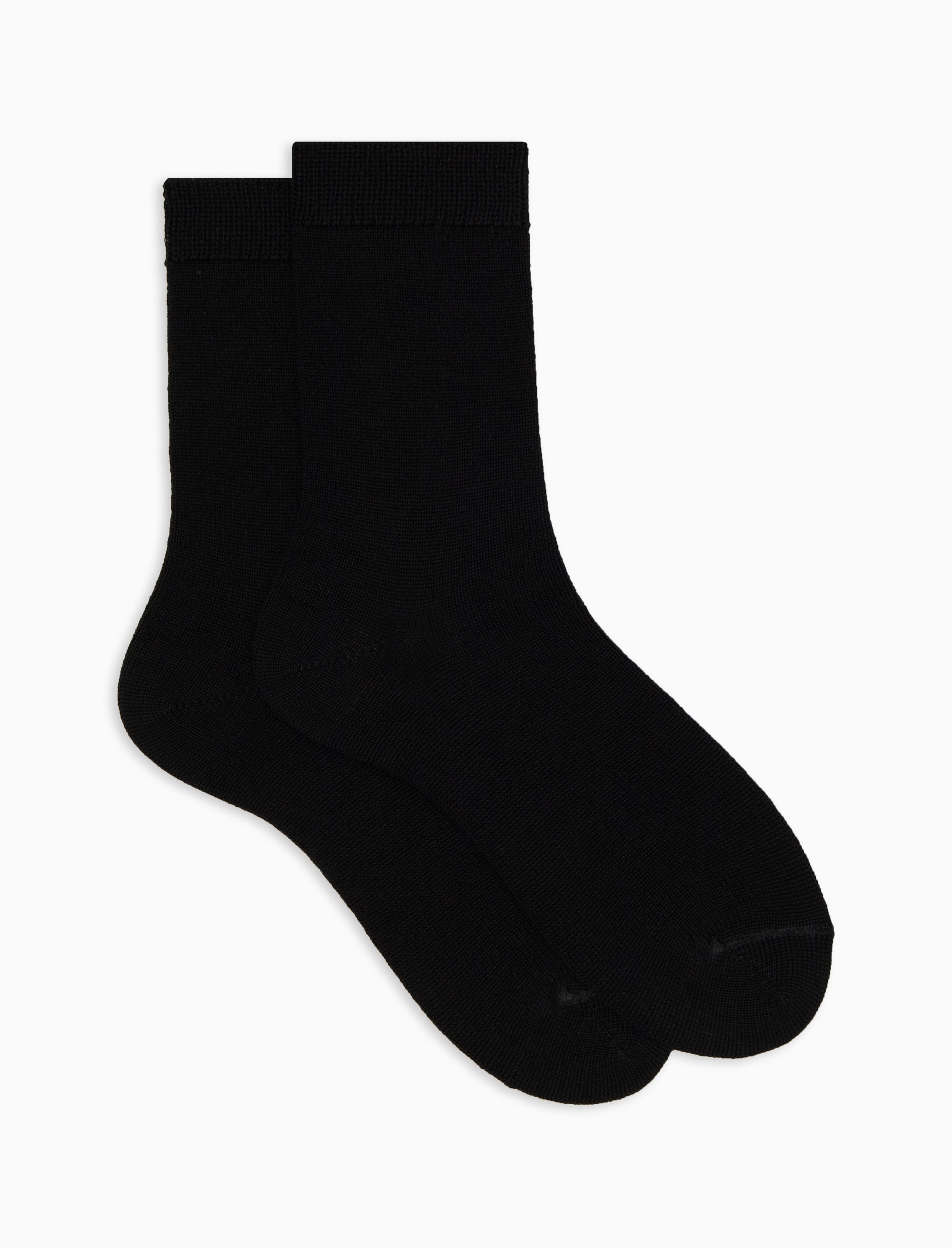 Calze corte donna lana, seta e cashmere nero tinta unita