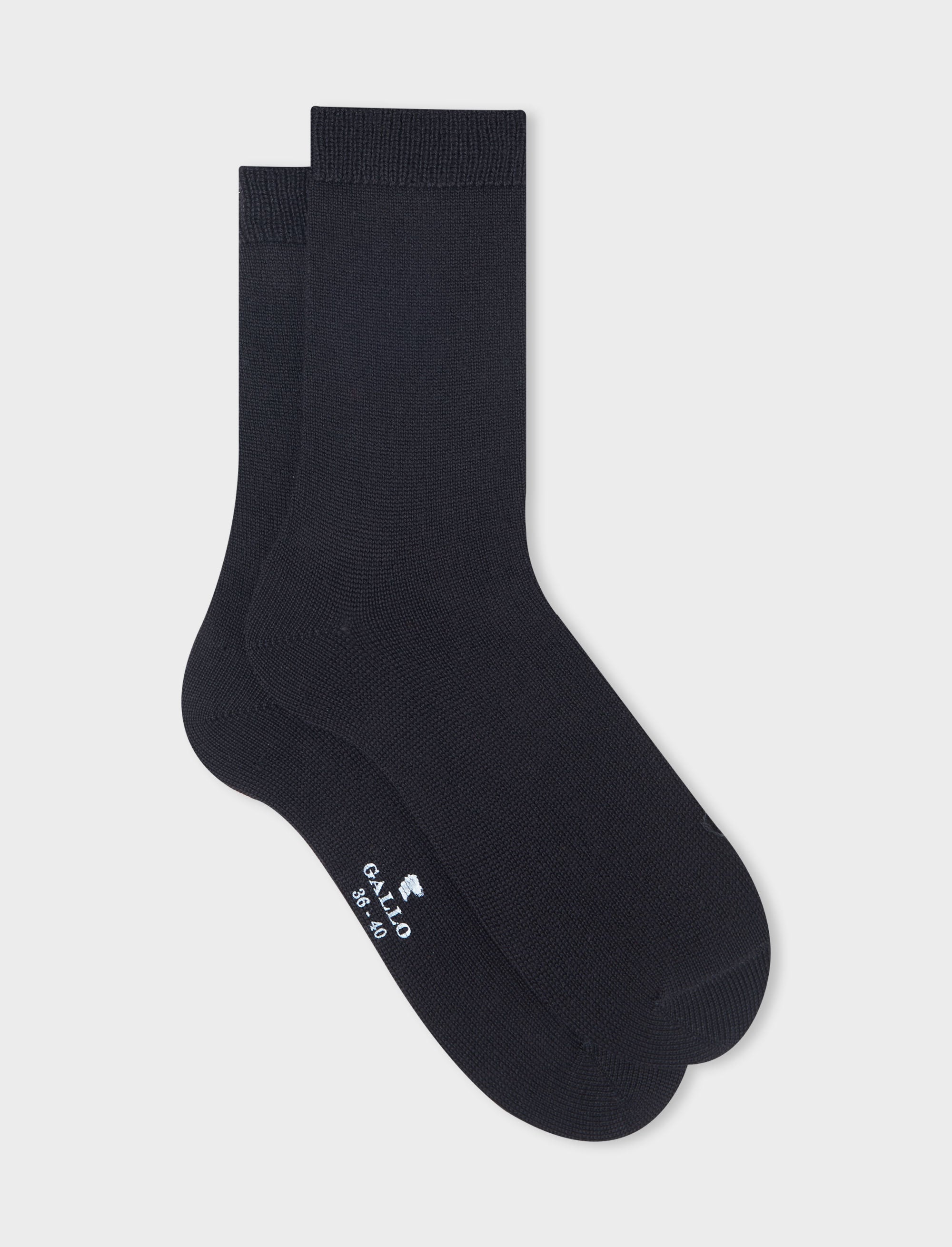 Calze corte da donna realizzate in Italia con un blend di filati pregiati, lana seta e cashmere, morbidissime al tatto. I toni scuri del nero rendono queste calze prefette per ogni look. Gallo: sinonimo di qualità ed eccellenza italiana dal 1927.