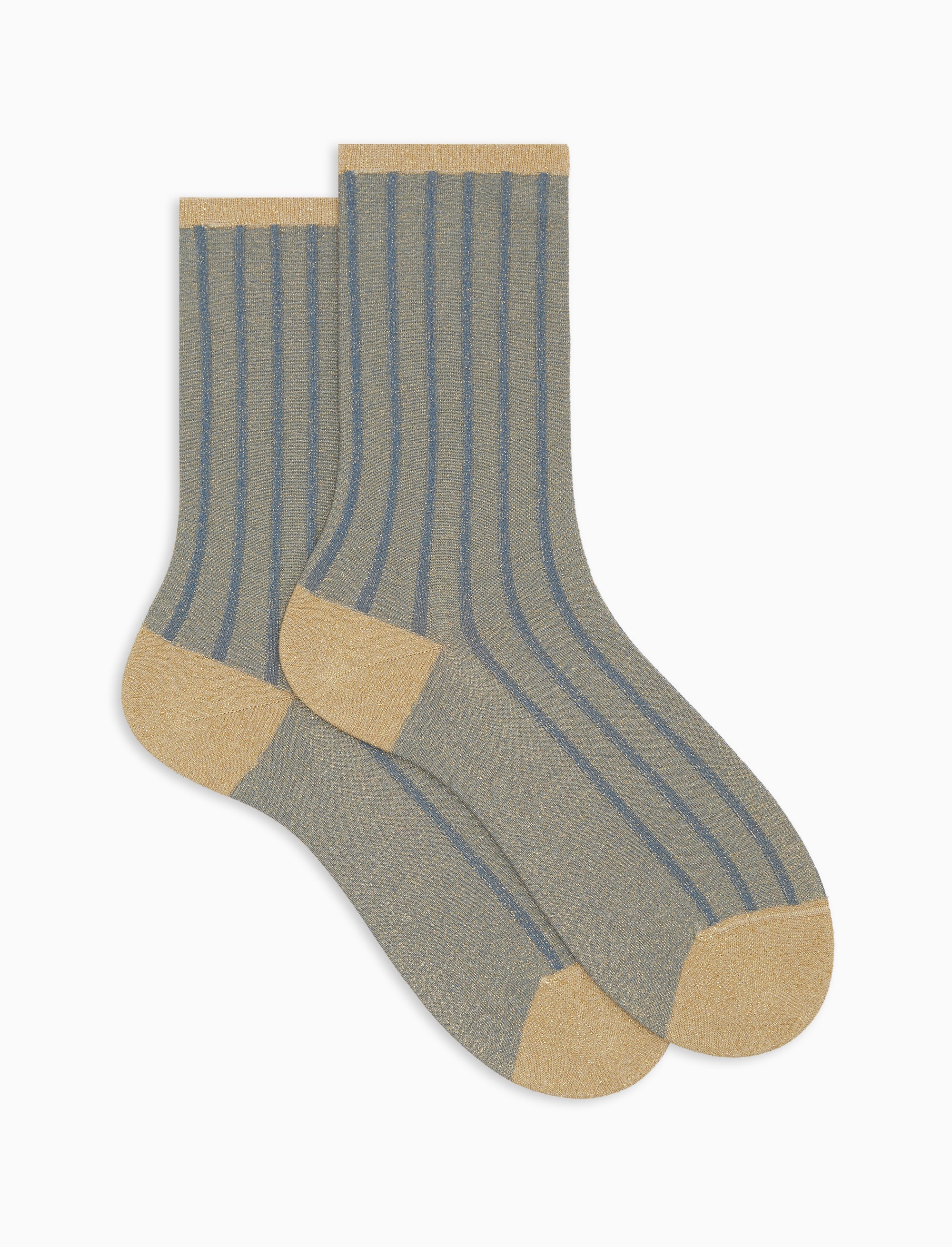 Calze corte donna twin rib spaziata con effetto scintillante azzurro