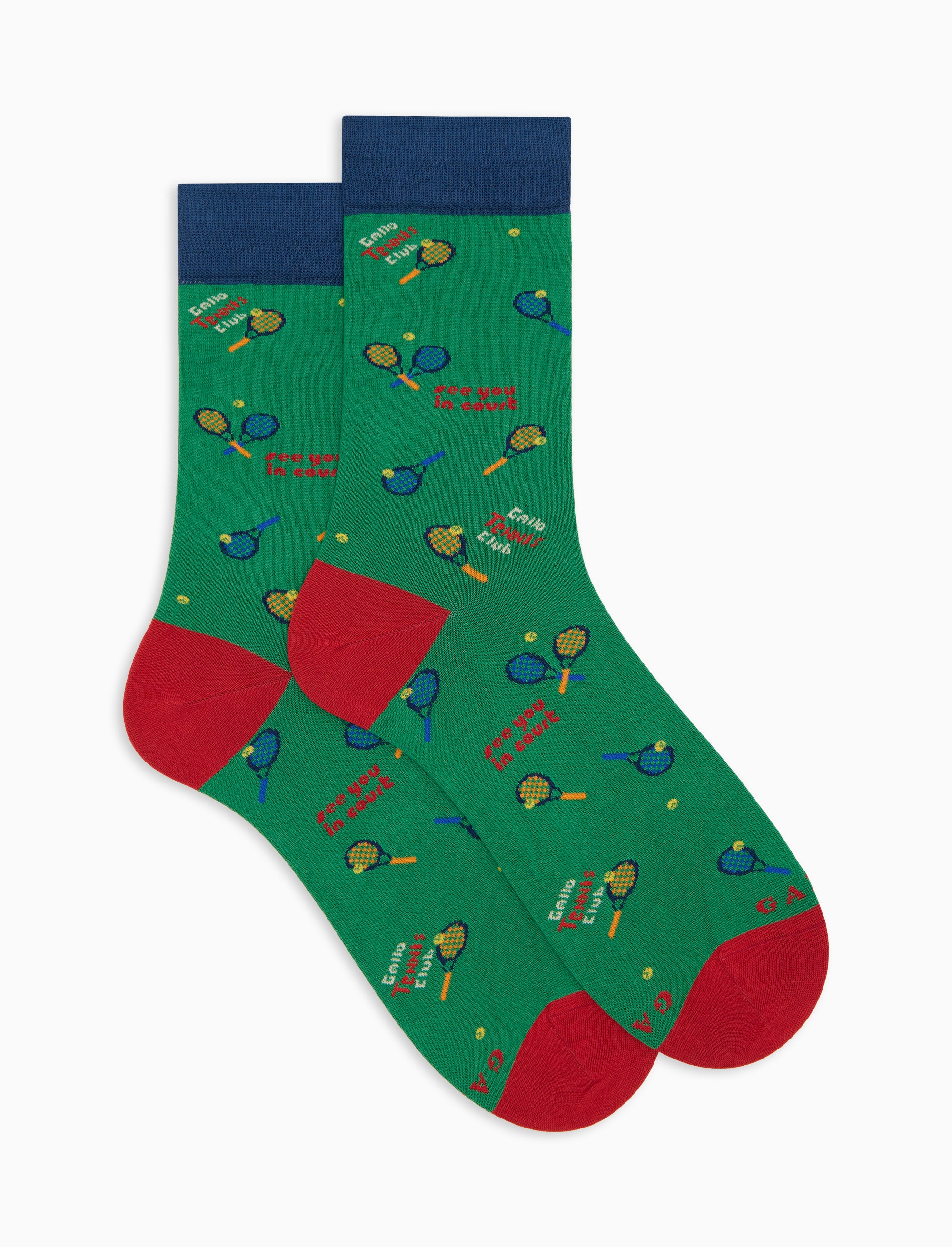 Calze corte uomo cotone verde fantasia tennis - Gallo 1927 - Official Online Shop