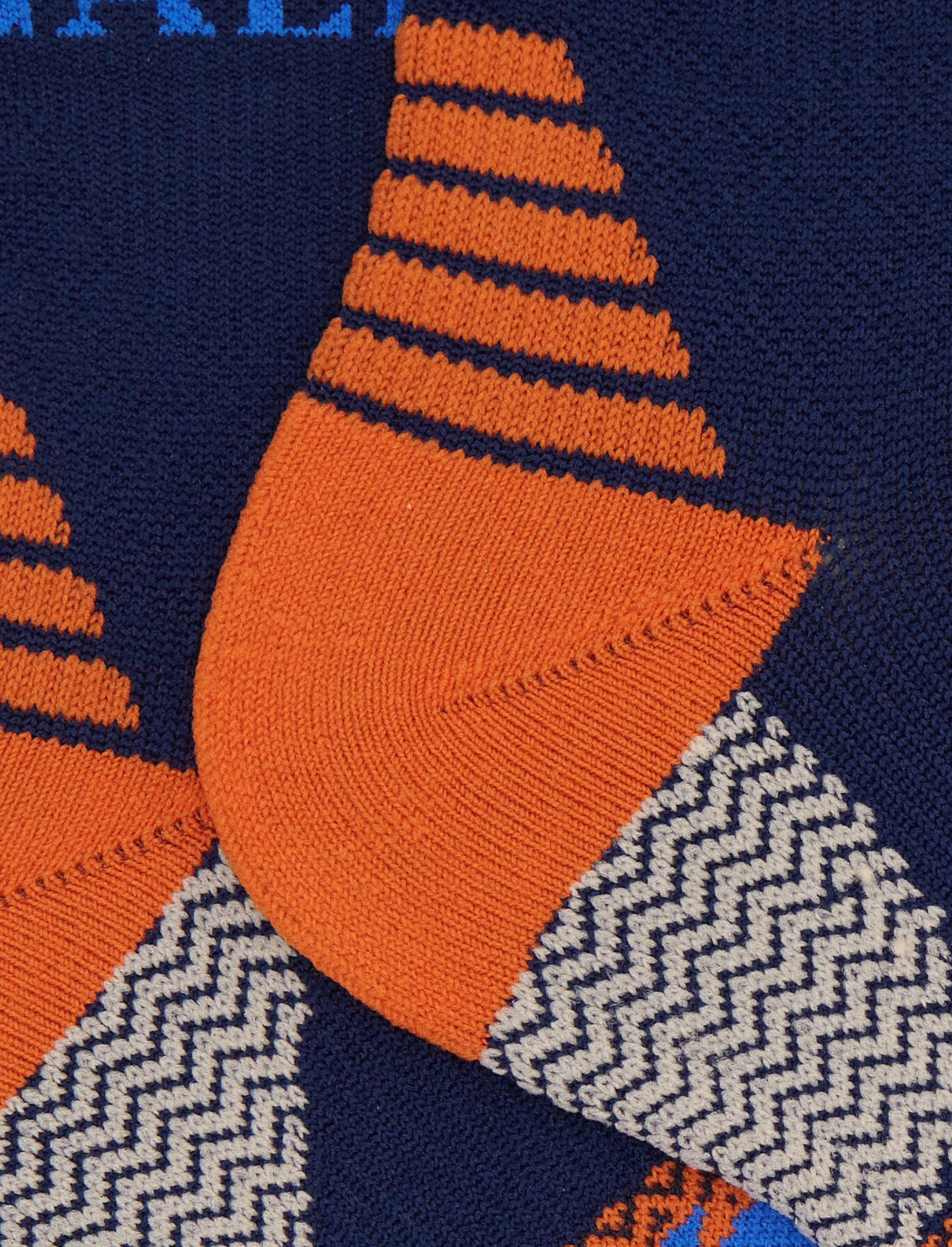 Calze cortissime unisex in spugna tecnica sui toni del blu realizzate in Italia. Molto morbide al tatto e adatte ad un look sportivo. L'iconica scritta Gallo, il gallo ricamato sul piede e la fantasia chevron di diverso colore le rende originali e immediatamente riconoscibili.