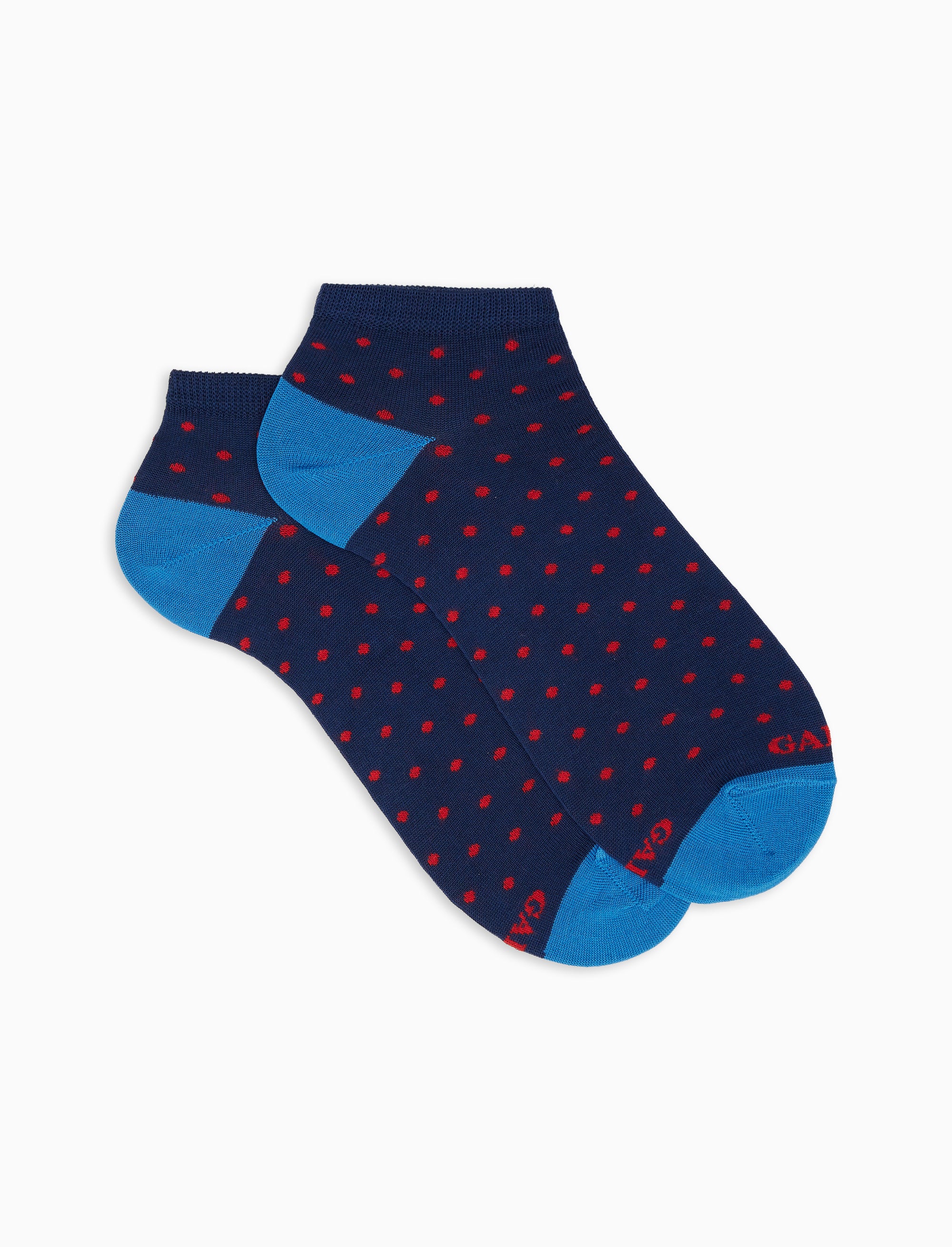 Calze fantasmini da uomo realizzate in Italia in morbidissimo cotone leggero. L'iconica fantasia a pois, nei toni del blu royal, rende queste calze immediatamente riconoscibili e perfette da abbinare ad ogni tipo di look. Il brand Gallo è in punta a contrasto. Sinonimo di qualità ed eccellenza dal 1927.