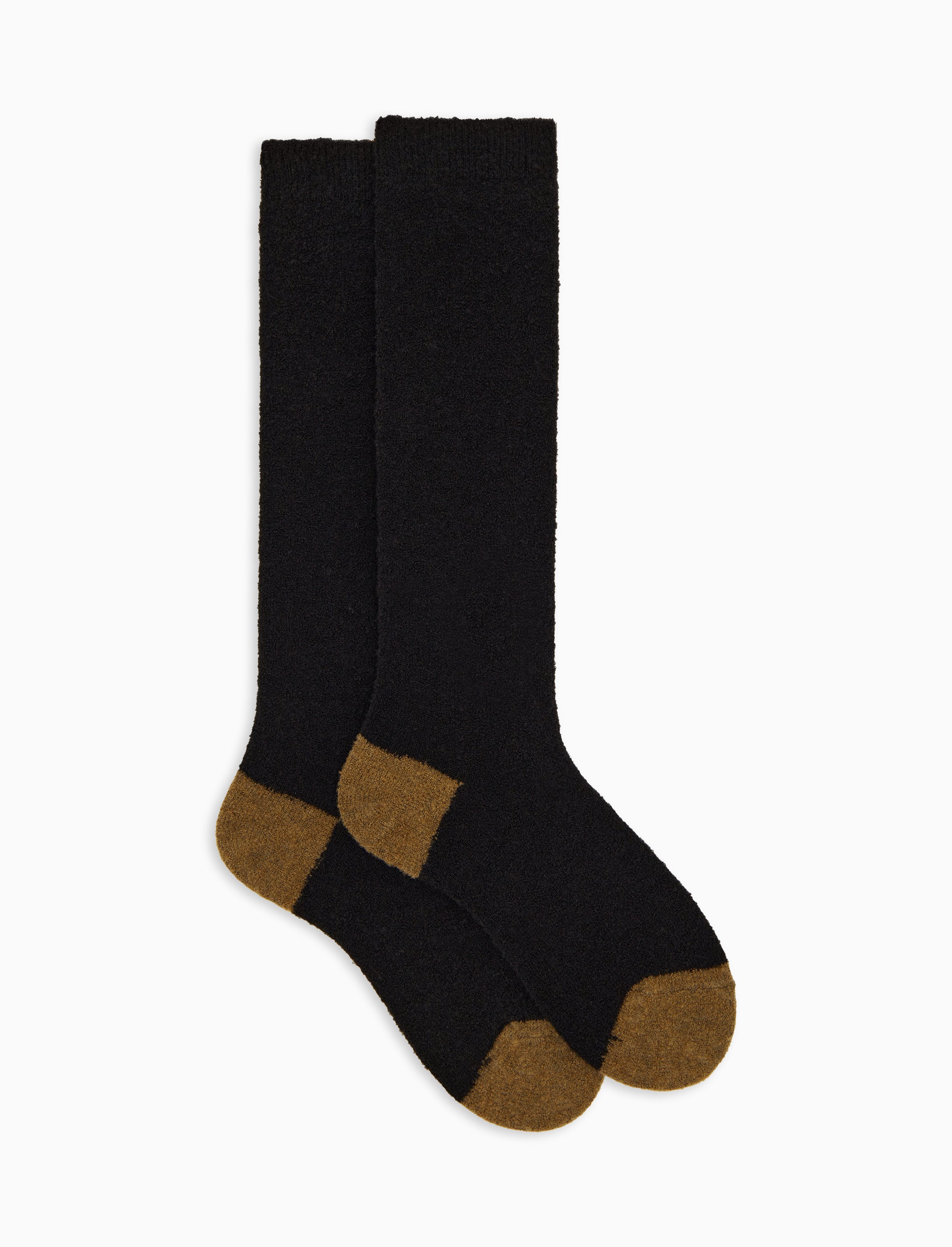 Calze lunghe donna lana bouclé nere tinta unita e contrasti