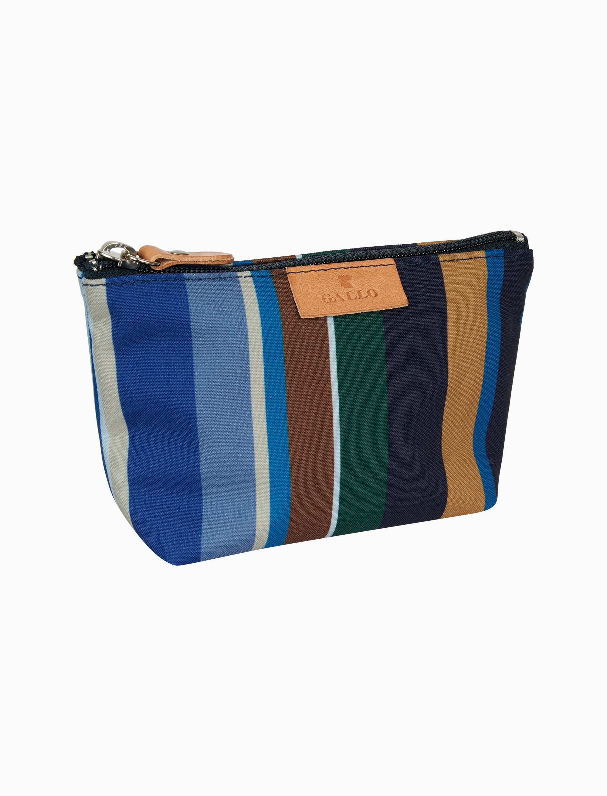 Pratica ed originale mini trousse unisex, realizzata in Italia con grande cura per i dettagli. Iconica fantasia a righe multicolor nei toni del blu. Ideale per avere il necessario sempre con se e non rinunciare ad un tocco di stile.
